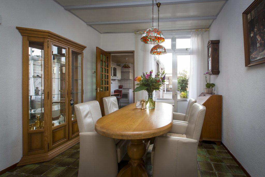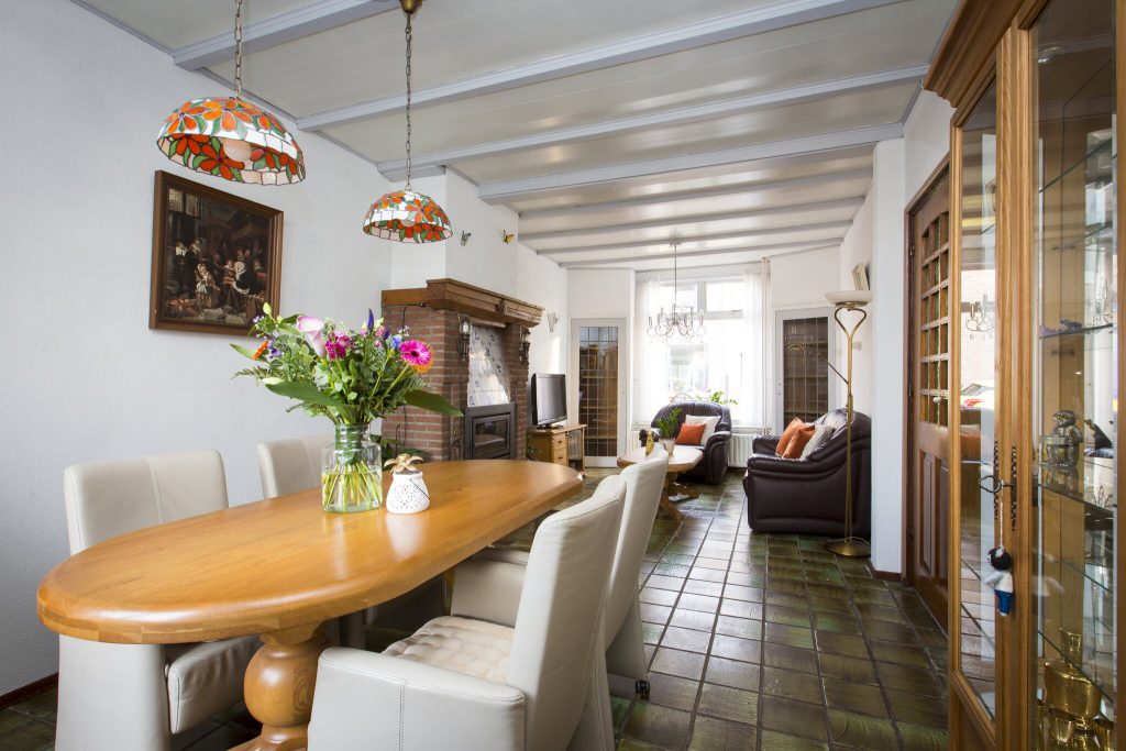 De hal/entree geeft toegang tot de trapopgang en de woonkamer. De woonkamer is voorzien van een tegelvloer en een sfeervolle houtkachel. Aan de achterzijde heeft u via een deur toegang tot de achtertuin en de keuken. De keuken heeft een keukenblok in rechte opstelling en is voorzien van een gaskookplaat, oven, afzuigkap, RVS spoelbak en een koelkast. Vanuit de keuken heeft u toegang tot de kelderkast en de bijkeuken. In de bijkeuken vindt u de aansluitingen voor de wasapparatuur, de opstelling van de CV-ketel (Intergas HR, 2018) en de toiletruimte. De toiletruimte heeft een staand toilet en een fonteintje. Zowel de bijkeuken als de toiletruimte zijn voorzien van tegelwerk op vloer en de wanden.