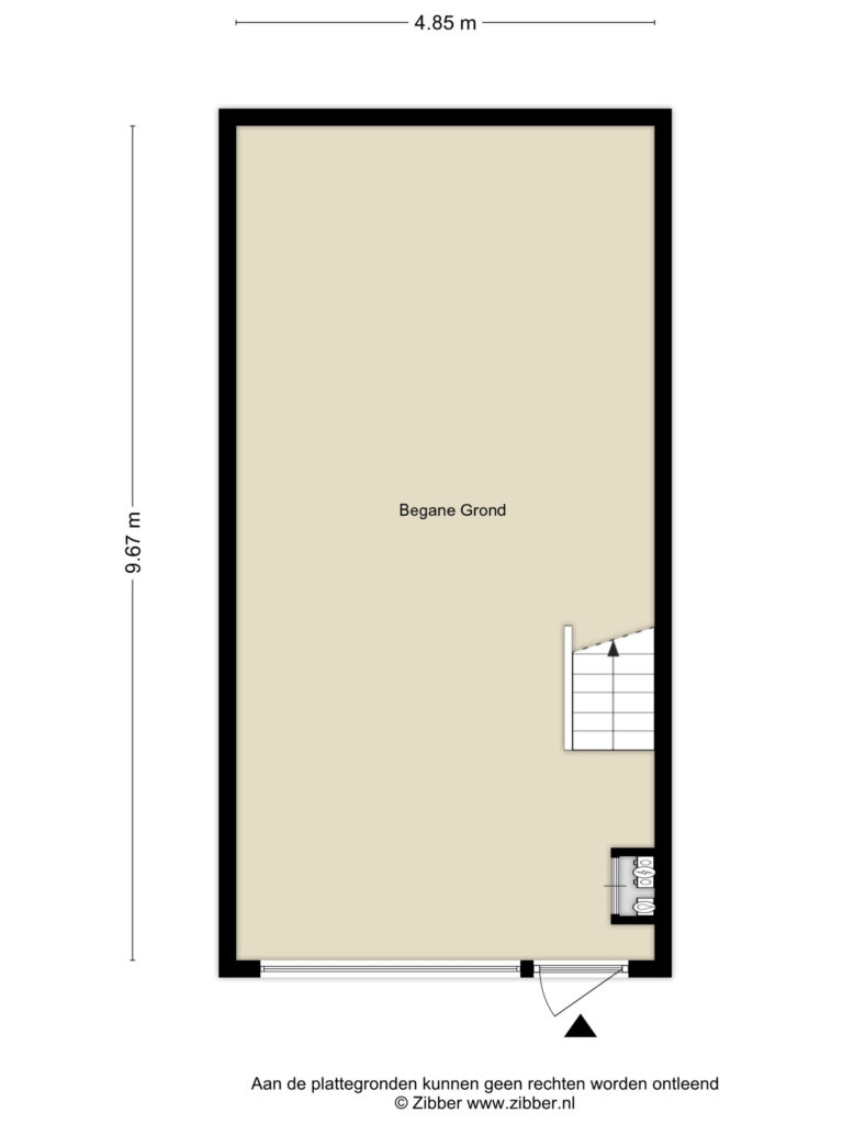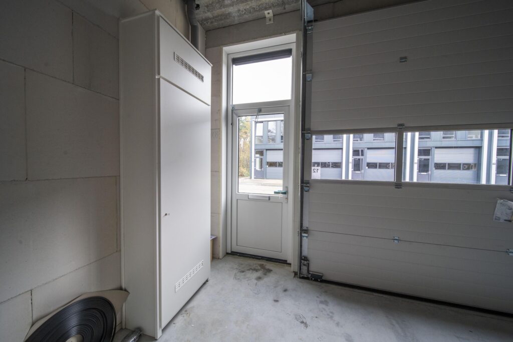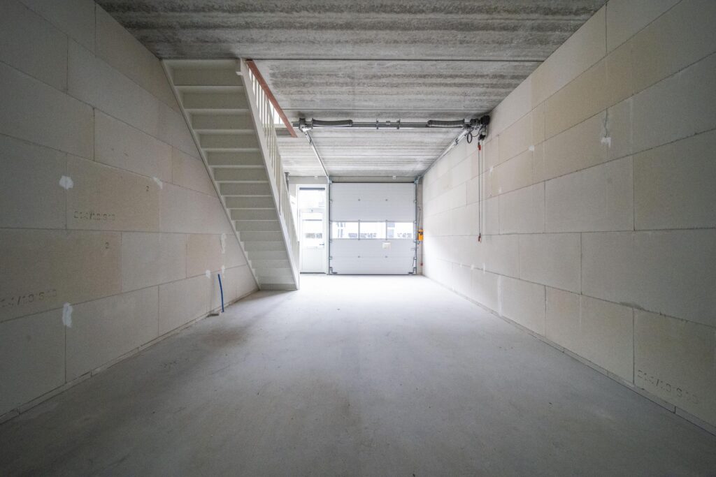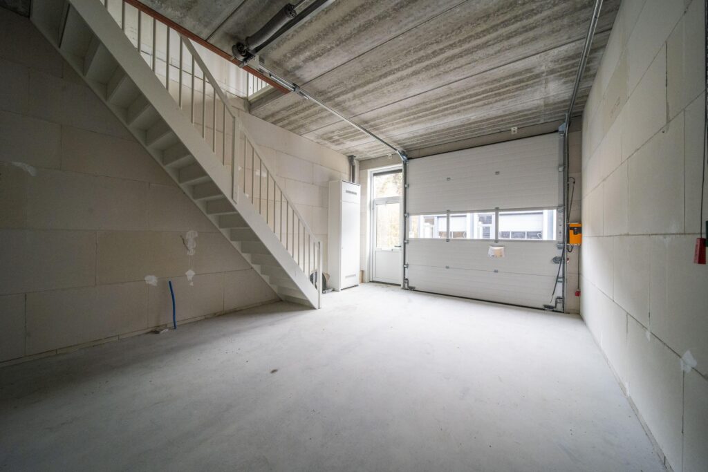 Bij binnenkomst betreedt u een royale rechthoekige hal, die volledig vrij indeelbaar is. De entree bevindt zich aan de voorzijde van het pand via de overheaddeur (ca. 3 meter breed & 3,20 meter hoog) of de loopdeur, waardoor zowel personen als goederen efficiënt toegang hebben tot de ruimte. Aan de rechterzijde van de ruimte is de trapopgang naar de verdieping gelegen alsmede de aansluitingen voor water, geschikt voor bijvoorbeeld sanitaire voorzieningen of een pantry. Daarnaast is aan de buitenzijde van het pand een mantelbuis voorbereid, die onder meer kan worden benut voor het installeren van een laadvoorziening voor elektrische voertuigen.
