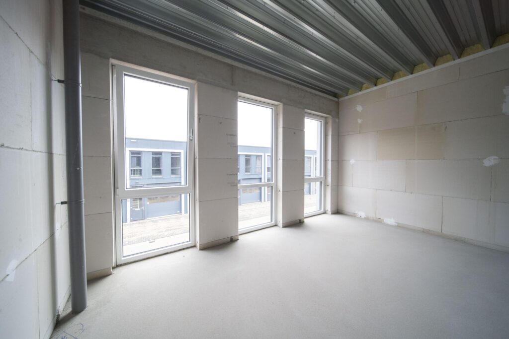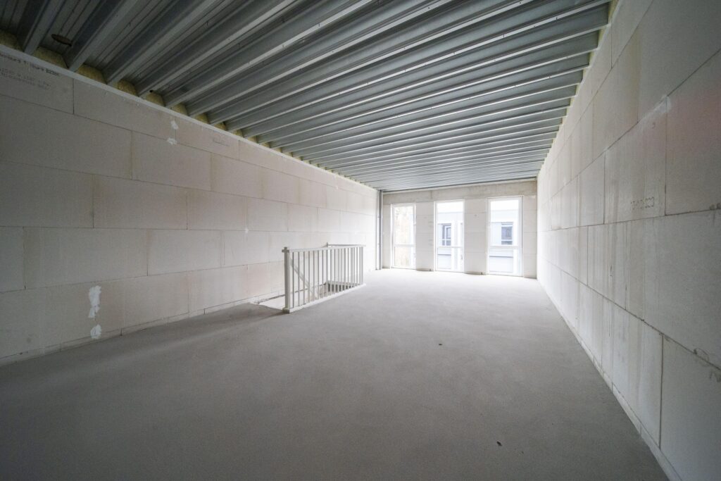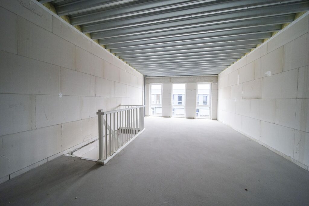 De eerste verdieping beslaat eveneens een open en rechthoekige ruimte, die qua indeling en gebruik volledig naar wens kan worden ingevuld. Vanuit de trapopgang komt u in een helder en ruim vertrek dat uitstekend geschikt is voor kantoor-, opslag- of ondersteunende werkruimte. De verdieping biedt ruim voldoende daglicht via meerdere raampartijen aan de voorzijde van het pand. Daarnaast zijn op deze verdieping al dakdoorvoeren voorbereid, wat het eenvoudig maakt om aanvullende installaties te plaatsen zoals airconditioning.