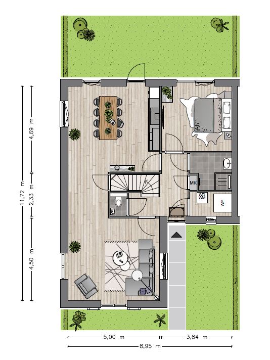 Type H is een fraaie (semi)-bungalow op een ruim perceel en komt negen keer voor in het project. Deze ruim opgezette bungalows kennen een uiterst functionele indeling. Naast een ruime woonkamer met ruime keuken aan de achterzijde van de woning bieden ze onder meer 1 ruime slaapkamer, een badkamer, toilet en berging op de begane grond. De verdieping is gemakkelijk in te delen tot meerdere ruimtes. De type H woningen zijn voorzien van een berging in de achtertuin.