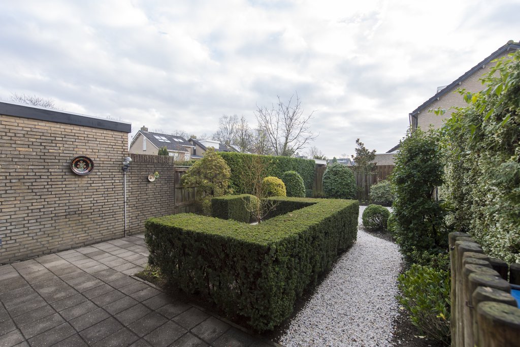 De woning beschikt over zowel een voor- als achtertuin. De riante achtertuin is fraai aangelegd en gelegen op het zonnige zuidoosten. De tuin is voorzien van sierbestrating en plantenborders. Aan de woning vindt u een elektrisch zonnescherm over nagenoeg de volledige breedte van de woning. Achterin de tuin is de garage gelegen. De ruime garage is voorzien van elektra. De sectionaal deur geeft toegang tot de oprit voor de garage.