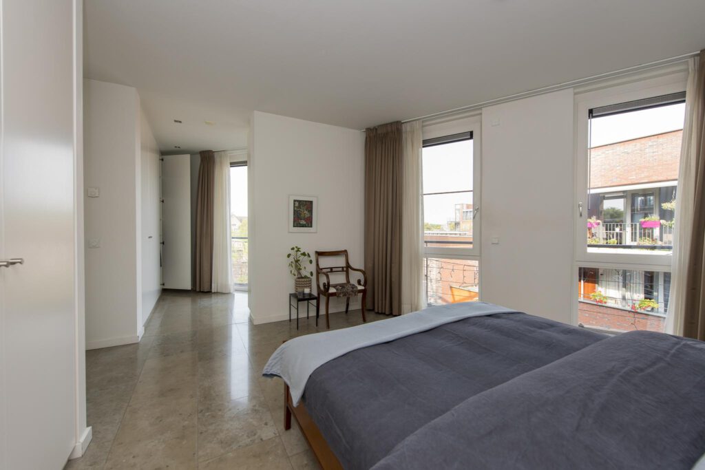 Via een gang zijn de slaapkamers en de badkamer te bereiken. Ook de slaapkamers zijn mooi afgewerkt met een tegelvloer (met vloerverwarming) en stucwerk op de wanden en plafonds. Ook zijn beide slaapkamers voorzien van mooi weggewerkte plafondhoge inbouwkasten. Deze kasten zorgen voor veel handige bergruimte. De grootste slaapkamer beschikt daarnaast over een inloopkast. Ook hierin vindt u ingebouwde kasten. De luxe badkamer is betegeld en voorzien van een dubbele wastafel in meubel, inloopdouche, ligbad, toilet en een designradiator.