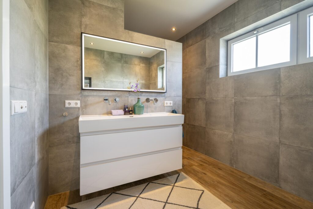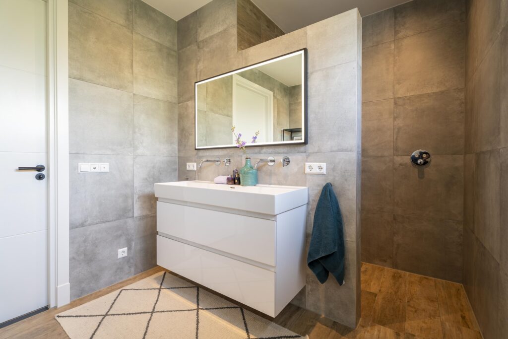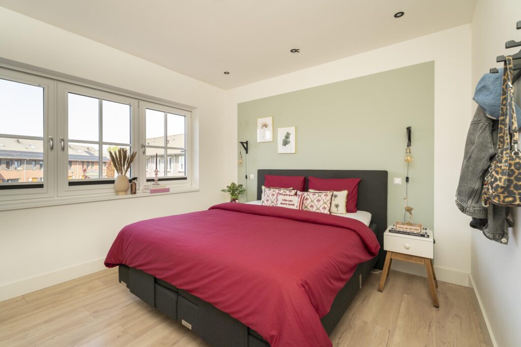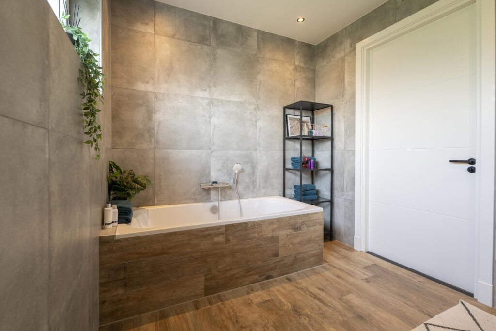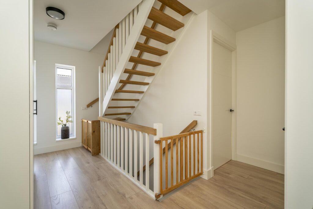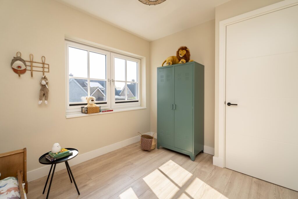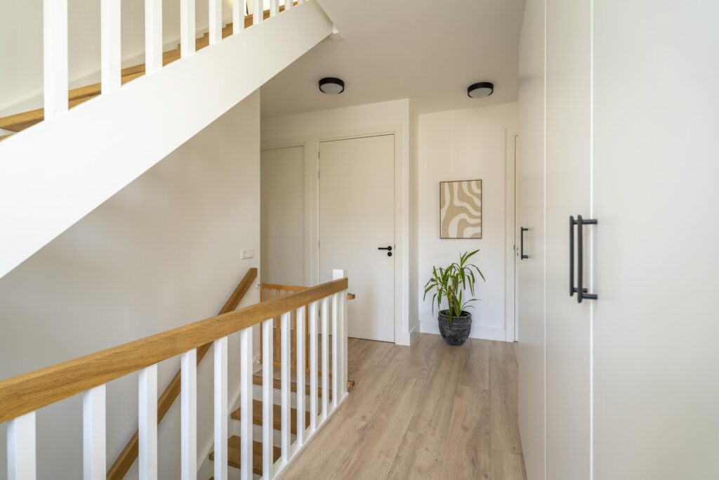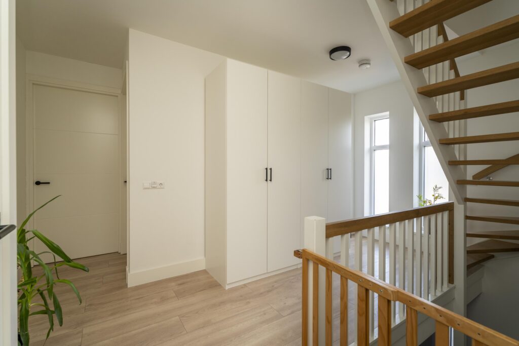 Ruime eerste verdieping met vier slaapkamers, luxe badkamer en separaat toilet. De eerste verdieping is perfect afgestemd op de wensen van het moderne gezin. Via de ruime overloop krijgt u toegang tot vier slaapkamers, de badkamer en de toiletruimte. De ouderslaapkamer aan de voorzijde is een ware master-bedroom. Leuk detail van deze kamer is de directe doorgang naar de andere slaapkamer aan de voorzijde van de woning. Hierdoor kunt u indien gewenst deze kamer gebruiken als walk-in-closet, een droom voor wie houdt van overzicht en luxe. De twee slaapkamers aan de achterzijde van de woning zijn eveneens fijn van opzet. Ideaal als kinderkamer, logeerkamer of thuiskantoor. Zowel de overloop als de slaapkamers zijn mooi afgewerkt met een laminaat vloer en stucwerk op de wanden en plafonds. De badkamer is stijlvol en praktisch ingericht. De ruimte is voorzien van een comfortabel ligbad, een royale inloopdouche uitgerust met een regendouche en losse handdouche en een dubbele wastafel in meubel, alles wat u nodig heeft om de dag ontspannen te beginnen of juist af te sluiten. De aparte toiletruimte op de overloop biedt extra gemak voor het hele gezin. De volledige verdieping is voorzien van vloerverwarming/koeling. Daarbij heeft elke ruimte zijn eigen temperatuursensor.