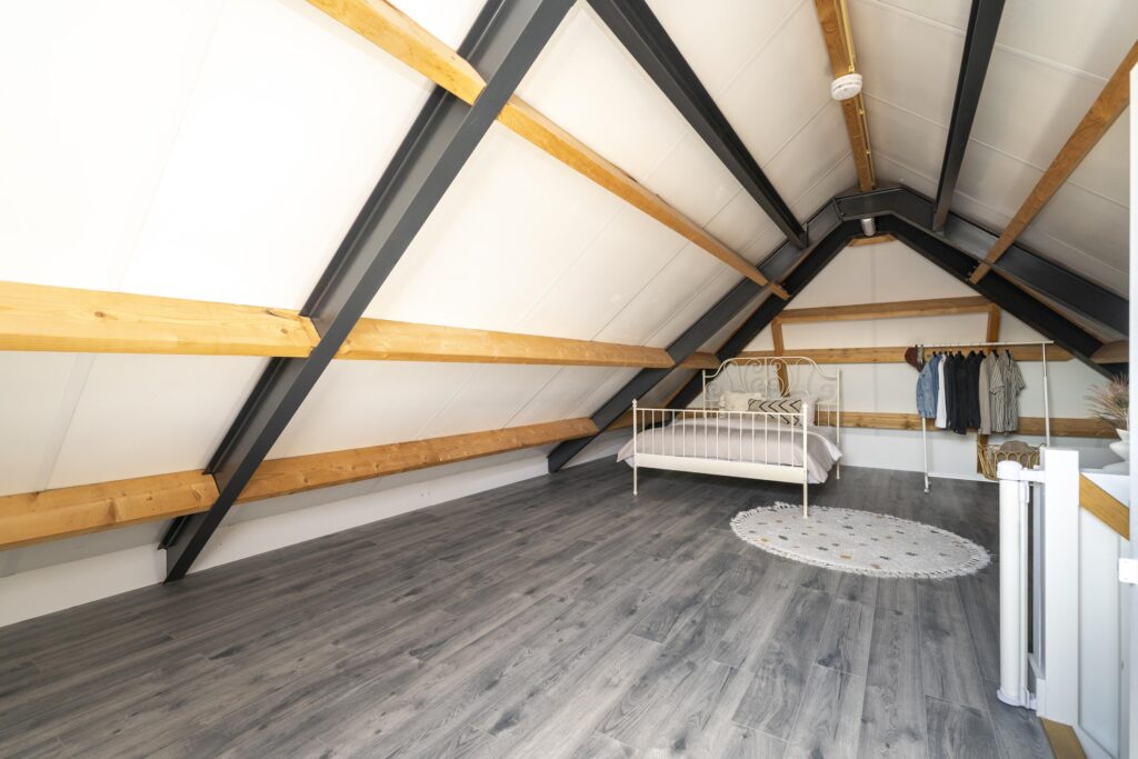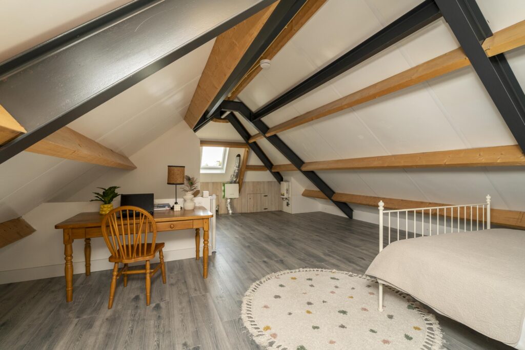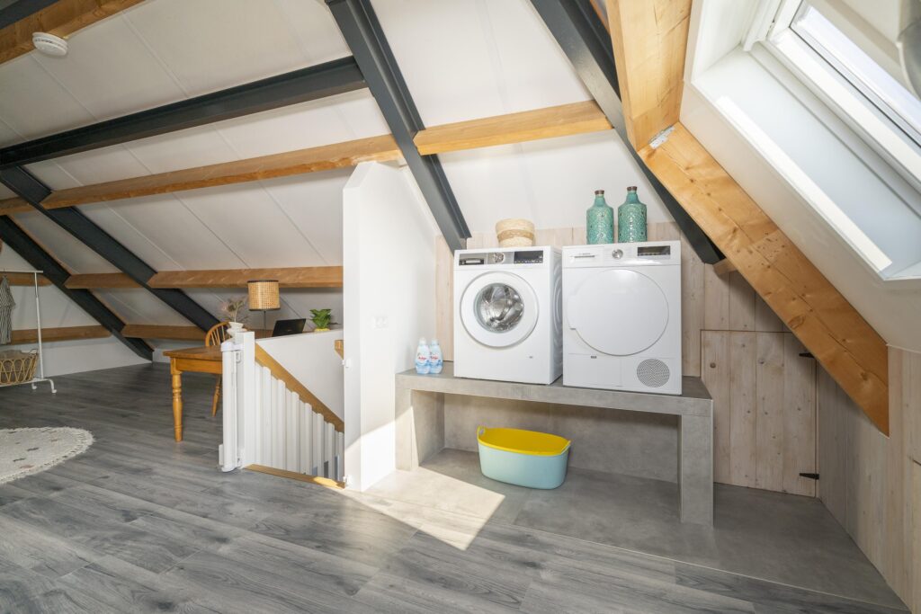 Deze verdieping betreft een ruime, open ruimte met een Velux dakraam en een speelse kapconstructie. De verdieping is afgewerkt met een nette laminaatvloer. Dankzij de royale afmetingen biedt deze verdieping volop mogelijkheden. U kunt hier bijvoorbeeld eenvoudig één of meerdere extra (slaap)kamers realiseren, geheel naar uw eigen wensen en woonbehoeften. Ook vindt u op deze verdieping de aansluitingen voor de wasapparatuur, de unit van de mechanische ventilatie en de omvormer van de zonnepanelen. Deze verdieping is ook voorzien van vloerverwarming/koeling met een temperatuursensor.
