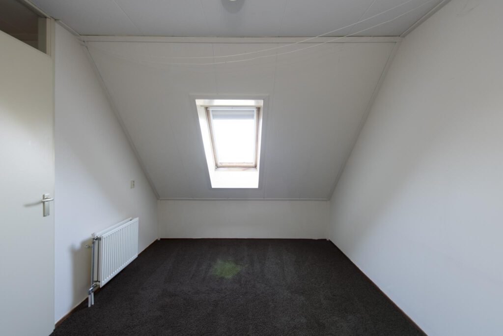 Ook deze verdieping is via een vaste trap bereikbaar en hier vindt u de derde slaapkamer en de CV-ruimte. De ruime slaapkamer op deze verdieping is keurig afgewerkt met vloerbedekking. Ook heeft de slaapkamer een Velux dakraam. De CV-ruimte biedt naast de opstelling van de CV-ketel (Nefit Proline HRC, 2020) ook bergruimte.