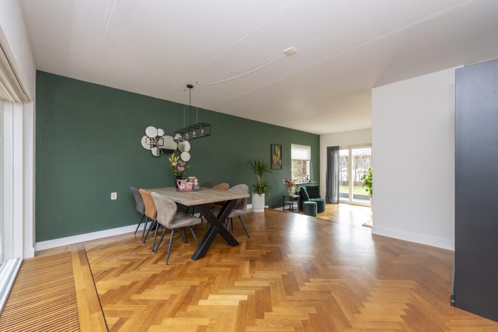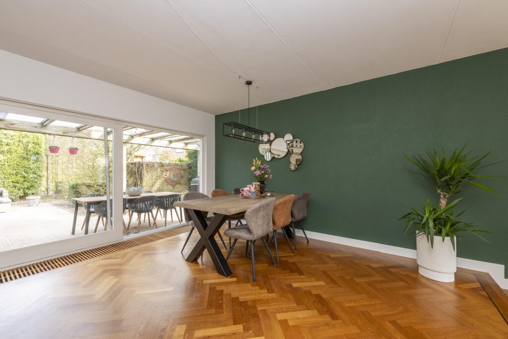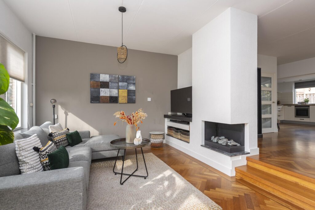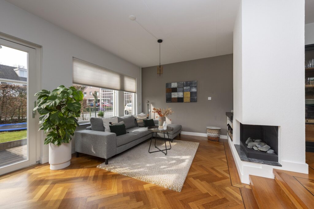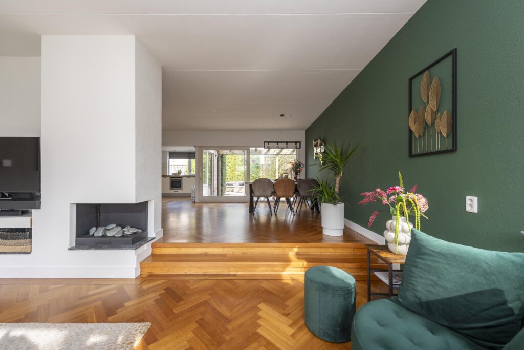 De hal/entree geeft toegang tot de meterkast, een toiletruimte en de woonkamer. Het toiletruimte is betegeld en voorzien van een fonteintje. De woonkamer is opgesplitst in een zit- en eetgedeelte en is afgewerkt met een parketvloer. Beide gedeelten zijn met een speels trapje (splitlevel living) van elkaar gescheiden. Het zitgedeelte is voorzien van een gashaard. Aan de voorzijde is tevens elektrische zonwering aanwezig. De keuken is opgesteld in een L-vormig keukenblok en is voorzien van verschillende inbouwapparatuur, te weten: een inductiekookplaat, RVS afzuigkap, combi-oven, vaatwasser (2024), close-in boiler en een RVS spoelbak. Via de keuken bereikt u de multifunctionele ruimte welke momenteel in gebruik is als speelruimte. De ruimte is afgewerkt met een mooie laminaatvloer, strak stucwerk op de wanden en inbouwspots in het plafond. Vanuit deze ruimte heeft u zowel toegang tot de achtertuin als de inpandige berging. De inpandige berging is voorzien van een radiator aansluiting is tevens vanaf de oprit bereikbaar.