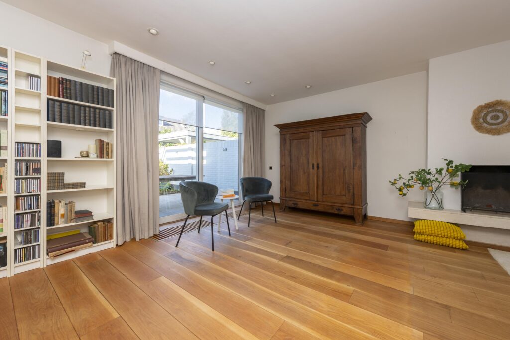 Via de entree met hal en toilet betreedt u de woning. Vanuit hier is er toegang tot zowel de woonkamer als de slaapkamer/multifunctionele ruimte op de begane grond. De woonkamer is royaal van opzet en door de grote raampartijen heerlijk licht. Er is volop ruimte voor een gezellige zithoek en vanuit de woonkamer staat u in directe verbinding met de eethoek. De woonkamer heeft een open haard en is afgewerkt met een fraaie houten vloer. De keuken is praktisch ingericht en heeft een keukenblok in rechte opstelling. De keuken is voorzien van veel gemakken. Zo vindt u hier een inductie kookplaat, afzuigkap, oven, magnetron, RVS spoelbak, vaatwasser en een koel-vriescombinatie. Daarnaast is in de keuken voldoende ruimte voor een flinke ontbijttafel. Via de keuken bereikt u de achtertuin. Een groot pluspunt is de slaapkamer op de begane grond. Deze ruimte kan uiteraard ook uitstekend dienen als werkkamer, speelkamer of hobbyruimte, net wat u nodig heeft. Dankzij de ligging en de afmetingen is dit een veelzijdige toevoeging aan het huis. De begane grond van deze woning combineert licht, ruimte en flexibiliteit, met volop mogelijkheden voor iedere levensfase.