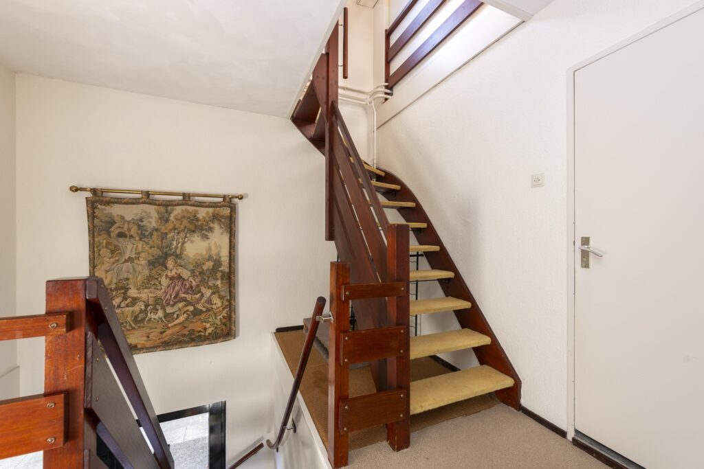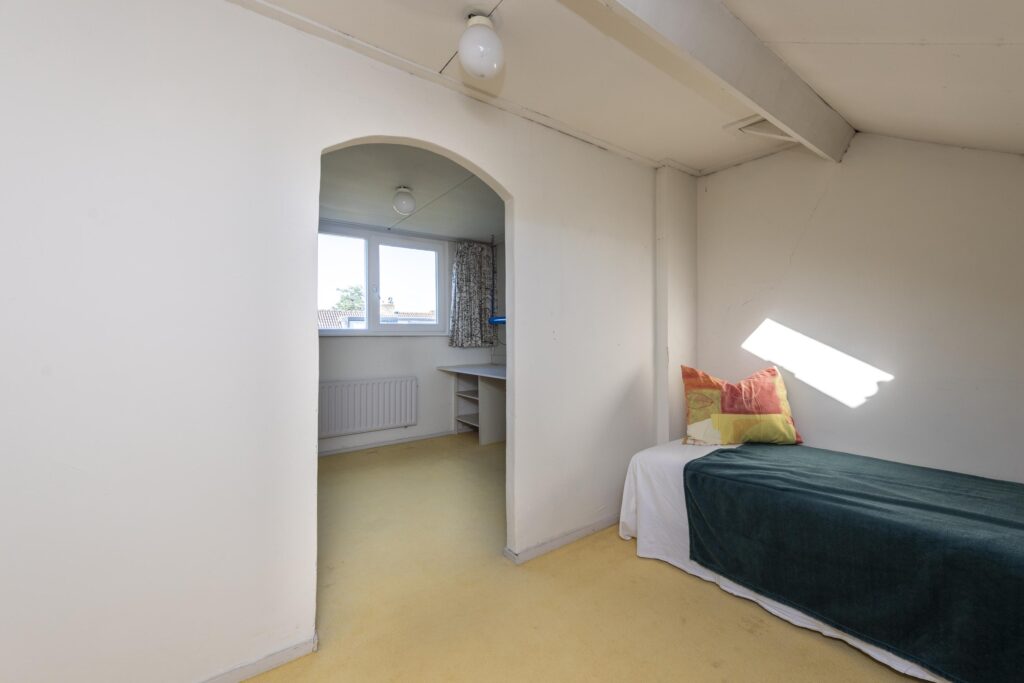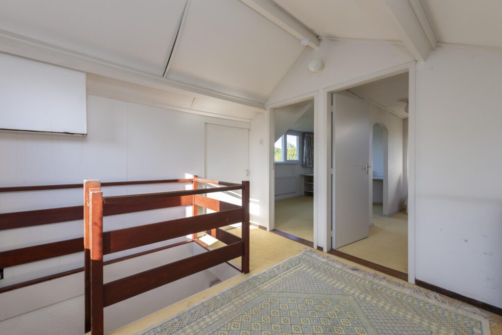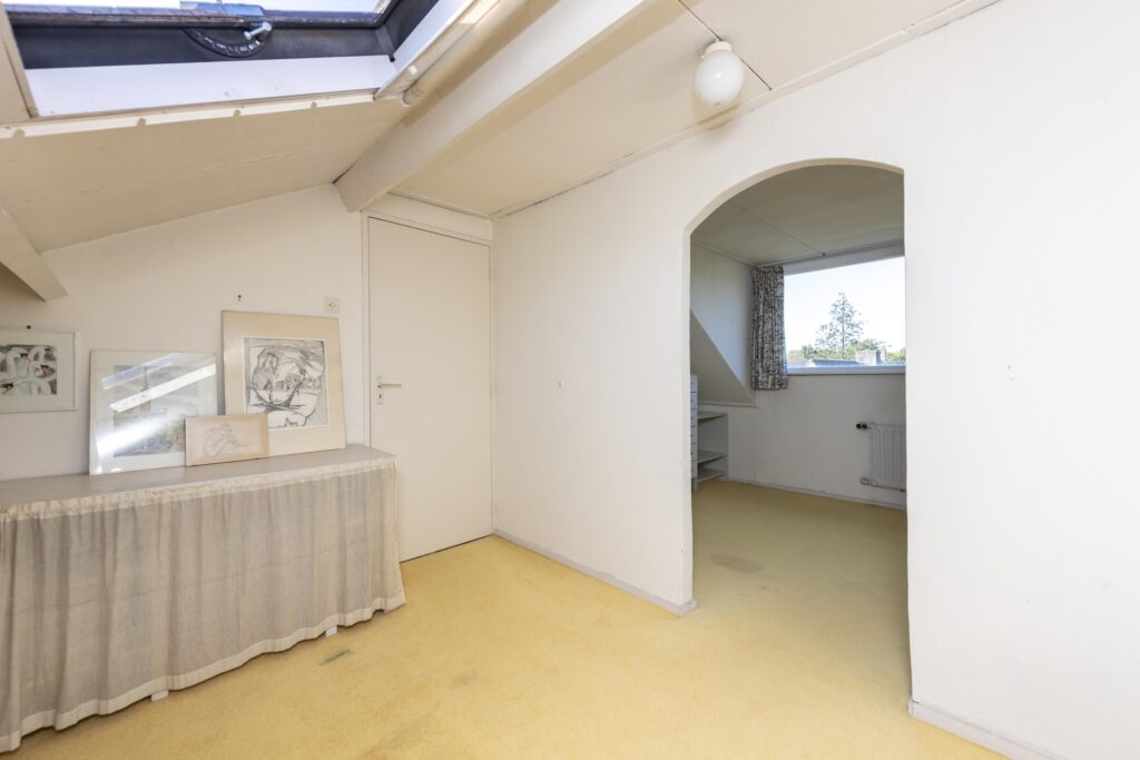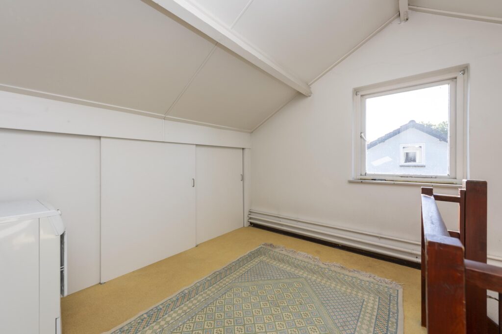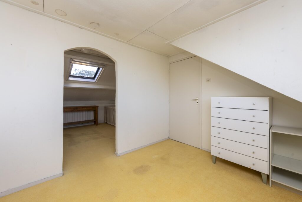 De tweede verdieping verrast met nog meer ruimte. De praktische overloop biedt veel vaste kastruimte met volop plek voor het opbergen van bijvoorbeeld seizoensspullen en koffers. Ook vindt u op deze verdieping een ruime slaapkamer die dankzij een dakkapel heerlijk licht is. De slaapkamer is speels opgedeeld door middel van een muurtje. Indien gewenst kunt u de kamer splitsen en twee slaapkamers creëren. Dankzij de slimme indeling en de combinatie van woon- en bergruimte is deze verdieping zowel functioneel als comfortabel, en vormt zij een waardevolle aanvulling op het wooncomfort van het huis.