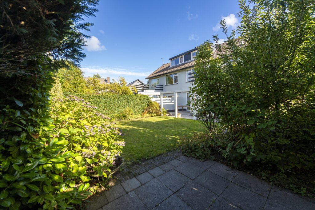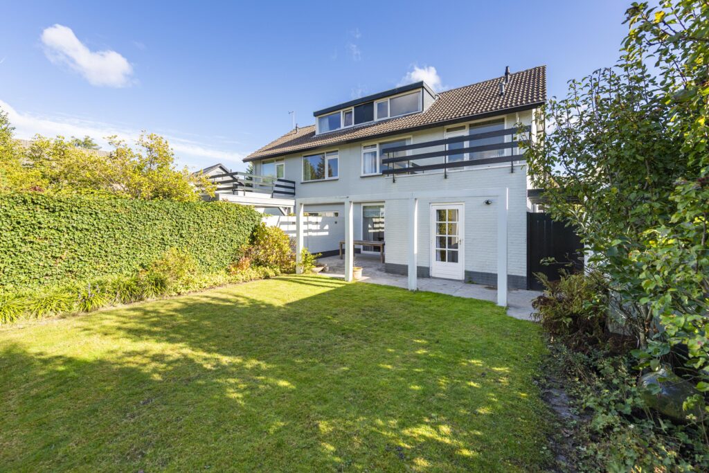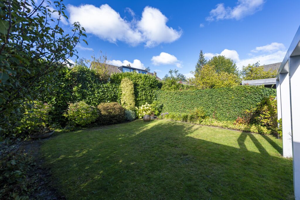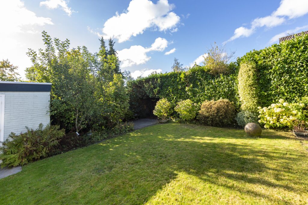 Vervolgens loopt u via de zijkant van het huis door naar de achtertuin. Daar ontvouwt zich een verrassend ruime, zonnige achtertuin gelegen op het zuidwesten. Hier geniet u volop van privacy dankzij de groene hagen die de tuin beschutten. De tuin is aangelegd met een fraai gazon, weelderige borders, en meerdere gezellige zithoekjes waar u heerlijk van de zon kunt genieten. De directe toegang tot de berging en achterom maakt deze tuin niet alleen mooi, maar ook nog eens enorm praktisch.