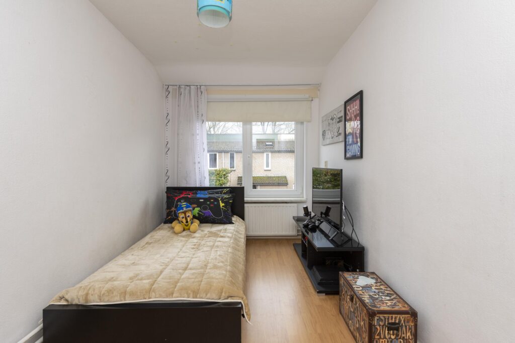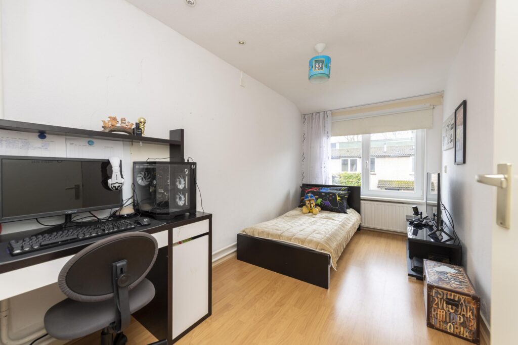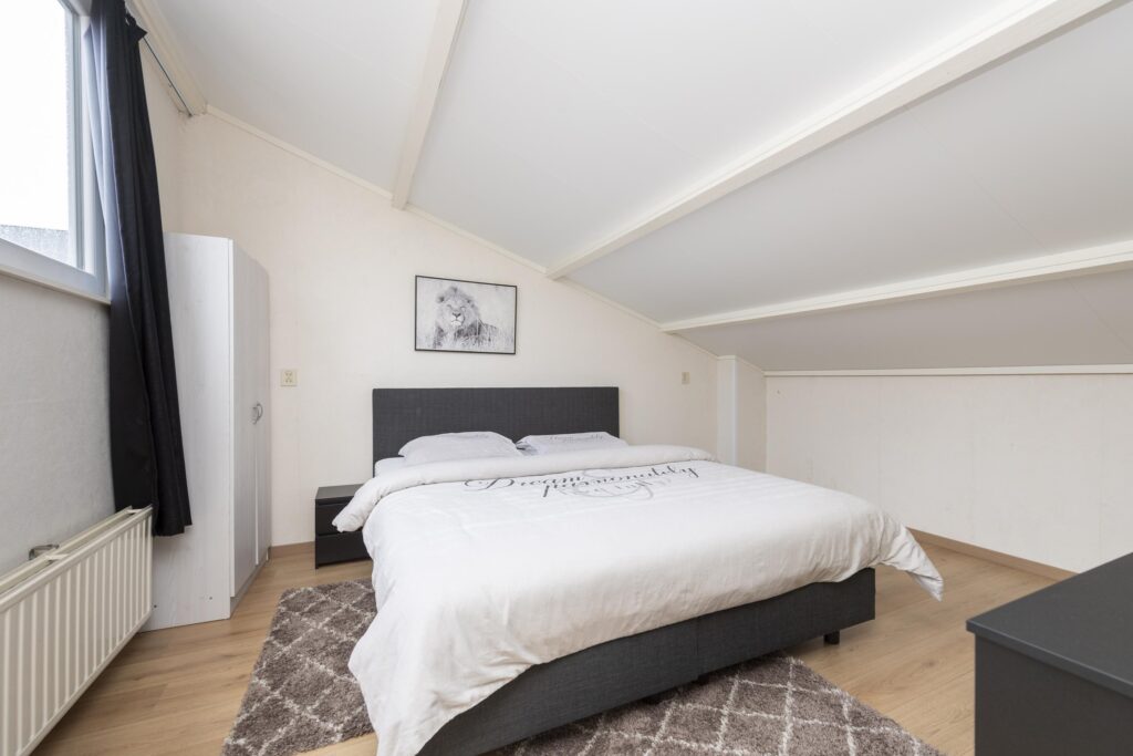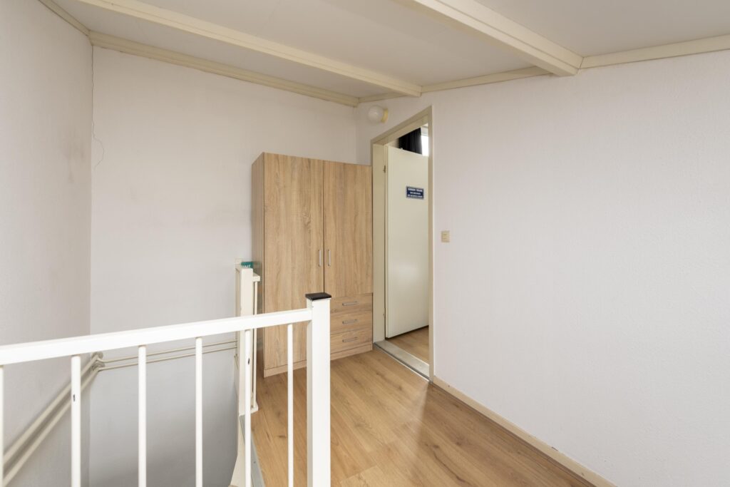 Via de vaste trap bereikt u de tweede verdieping, waar u uitkomt op een royale overloop met voldoende ruimte voor extra opbergmogelijkheden en het plaatsen van een wasmachine en droger. Vanaf de overloop loopt u door naar de vierde slaapkamer, een volwaardige en ruime kamer. De aanwezige berging in de knieschotten zorgt voor praktische extra opbergruimte. De tweede verdieping vormt hiermee een waardevolle uitbreiding van de woning, met volop ruimte en flexibiliteit voor verschillende woonwensen.