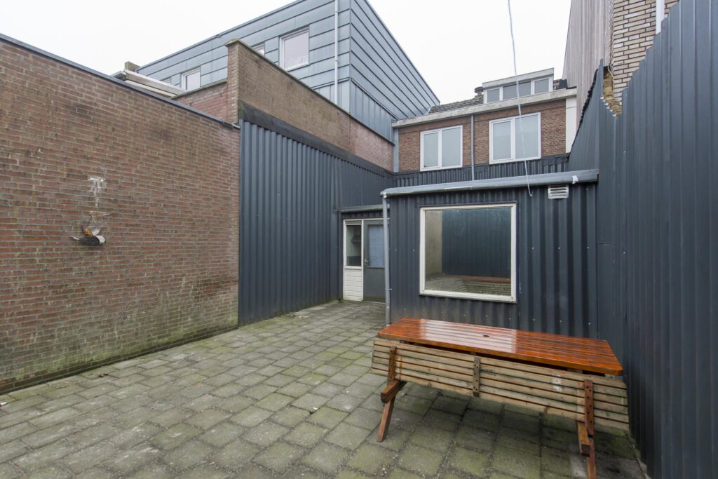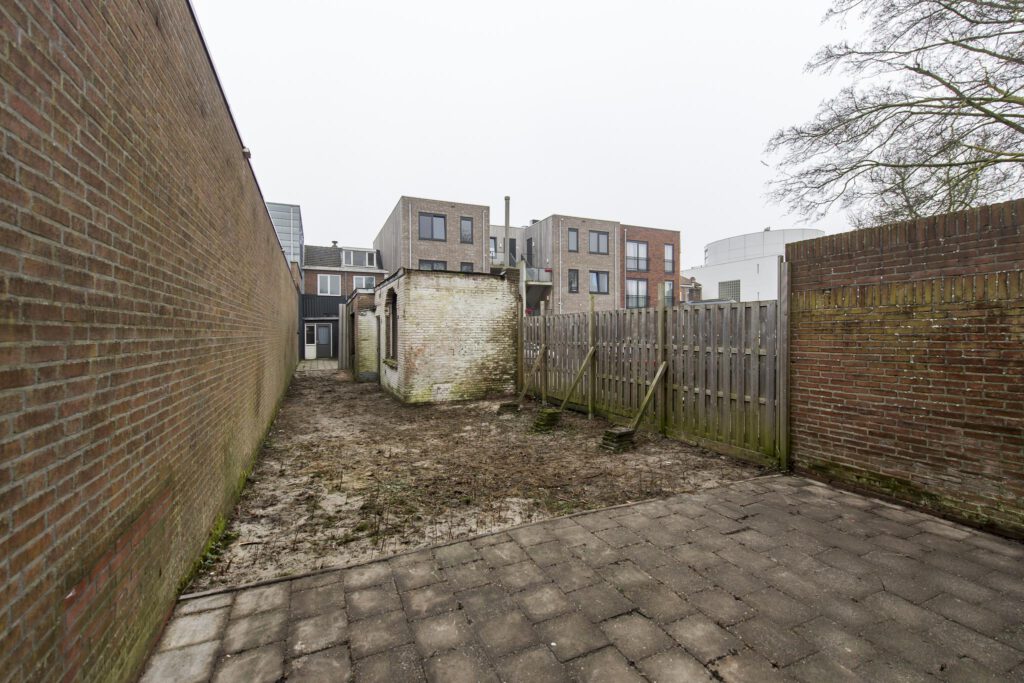 De zeer diepe achtertuin is gelegen op het noordoosten. Door de diepte van de tuin is er altijd een plekje in de zon of juist schaduw te vinden. De tuin dient nog aangelegd te worden en is op een tweetal plaatsen voorzien van betegeling. In het midden van de tuin staat een oude stenen berging.