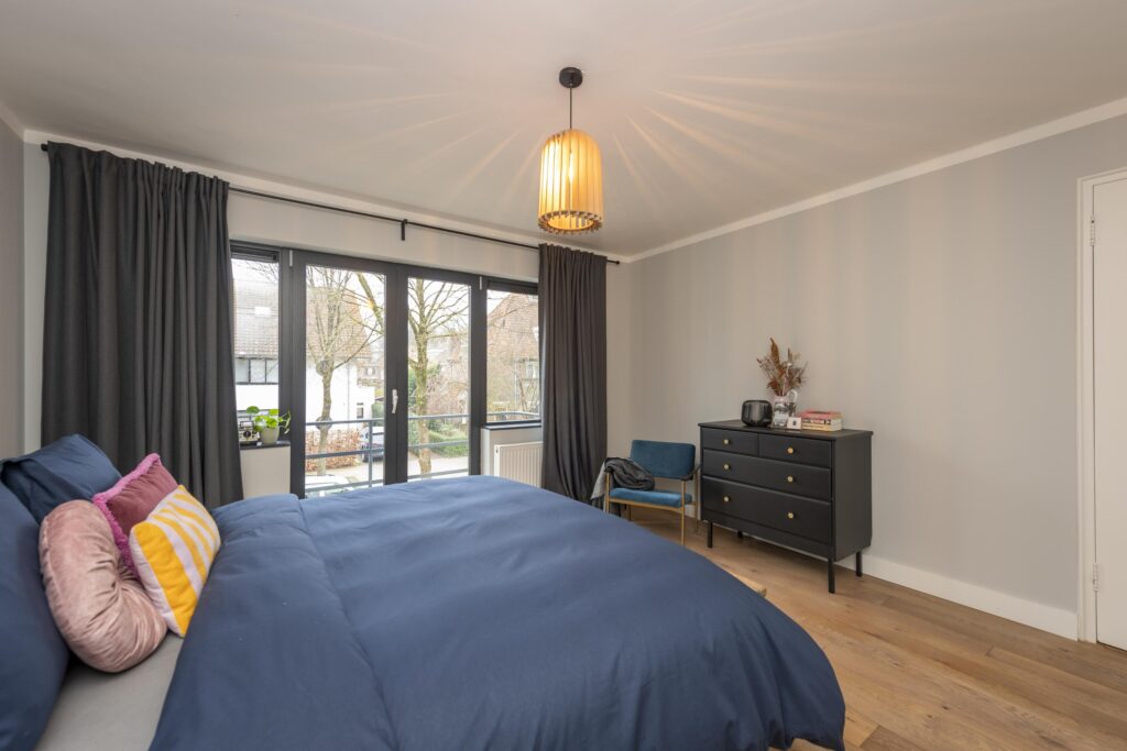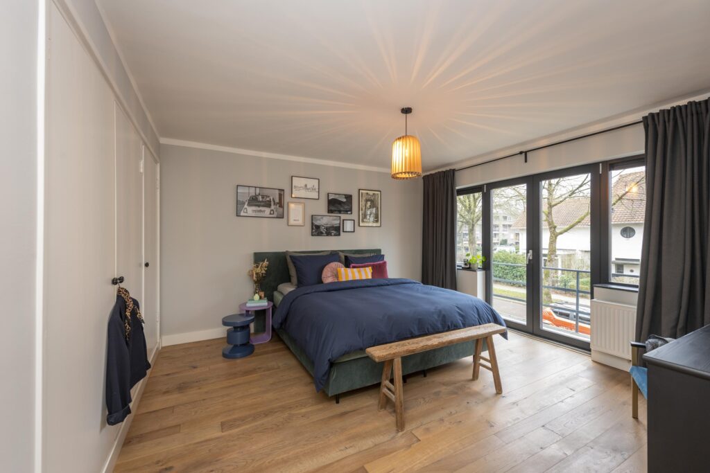 De overloop geeft toegang tot drie slaapkamers en de badkamer. Twee slaapkamers zijn gelegen aan de achterzijde van de woning en één aan de voorzijde. Alle slaapkamers zijn prachtig en strak afgewerkt met een houten vloer en stucwerk op de wanden en plafonds. De ouderslaapkamers aan de voorzijde is daarnaast voorzien van een handige en ruime inbouwkast. Tevens biedt deze slaapkamer toegang tot een balkon. Een van de slaapkamers aan de achterzijde heeft momenteel dienst als kasten-/waskamer. Hier vindt u de aansluitingen voor de wasapparatuur. Ook deze kamer geeft toegang tot een balkon. De derde slaapkamer van de verdieping is ook ruim bemeten. De mooie badkamer is betegeld en voorzien van een ligbad, douche, hangend toilet, dubbele wastafel in meubel en een designradiator.