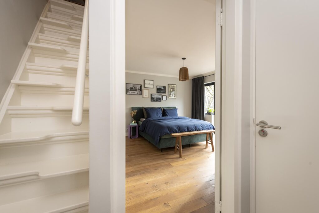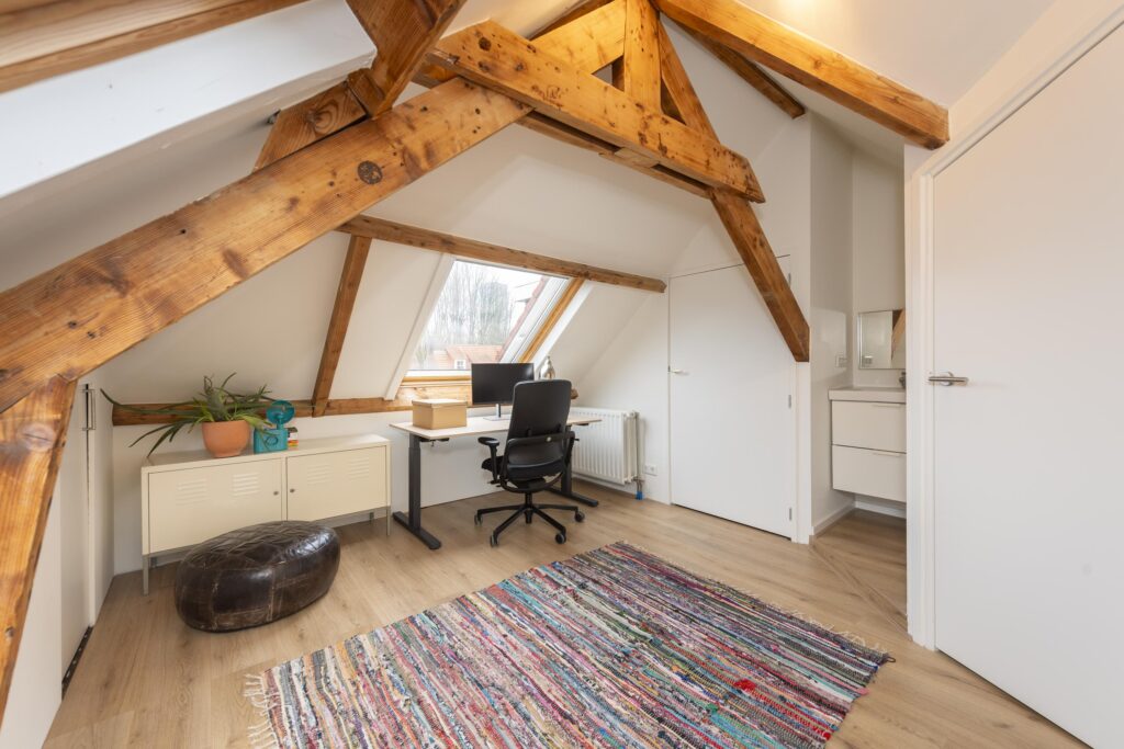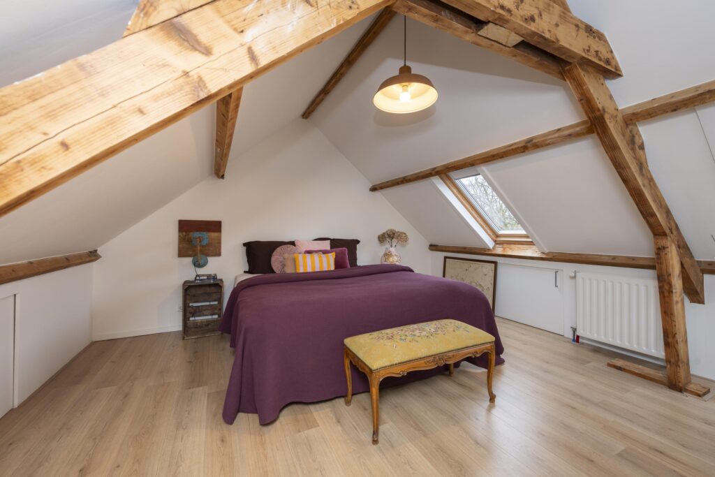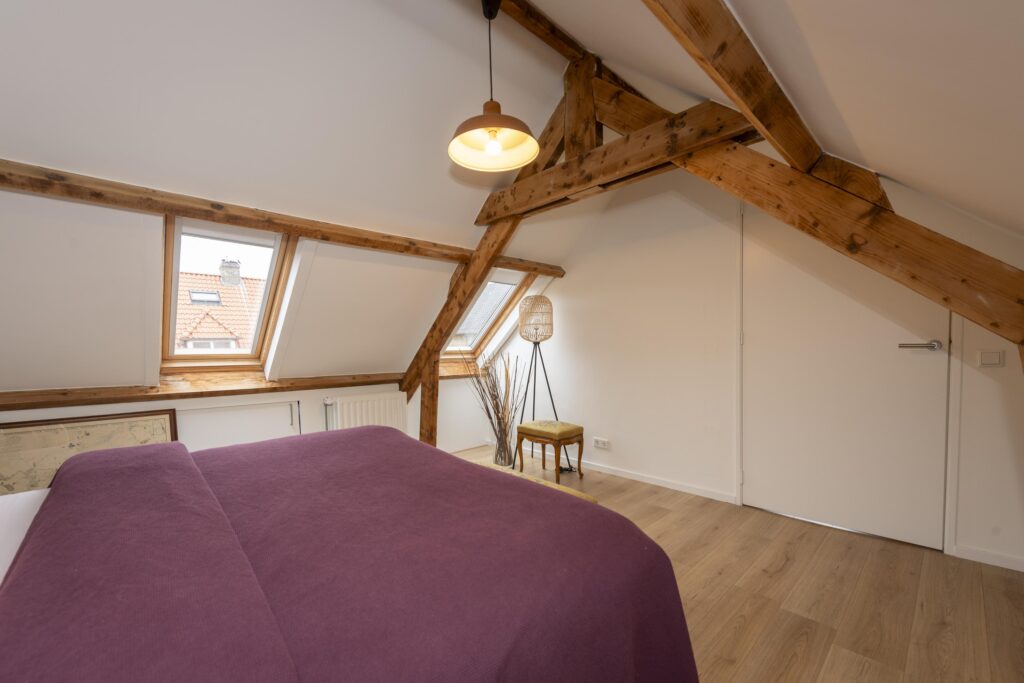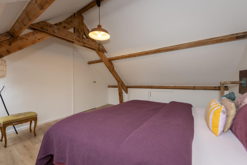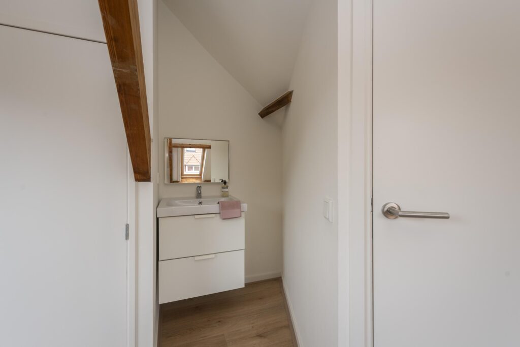 Op deze verdieping vindt u twee slaapkamers. Beide slaapkamers zijn schitterend afgewerkt met Velux dakramen, een laminaatvloer en stucwerk op de wanden en plafonds. Ook zijn bij beide slaapkamers de prachtige houten balken van de dakconstructie zichtbaar. Daarnaast beschikken de slaapkamers over handige bergruimte achter de knieschotten. Bovendien is een van de slaapkamers voorzien van een eigen wastafel. In deze kamer vindt u ook een kast met de CV-ketel (Remeha Calenta CW5, 2024).