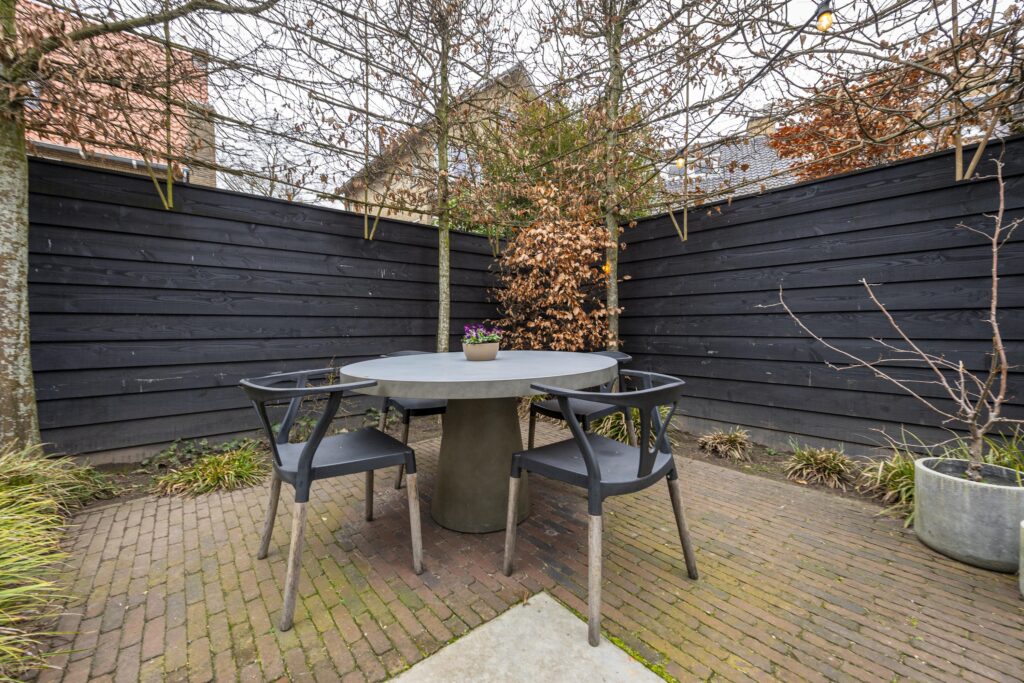 De woning is gelegen op een perceel van 297 m² en heeft zowel een voor-, zij- als achtertuin. De voortuin is netjes aangelegd met gazon, hagen en sierbestrating. Tevens vindt u hier de vrijstaande houten berging (2022, ca. 9 m² voorzien van elektra), de achterom en een directe toegang tot de leefkeuken. De mogelijkheid bestaat om hier een oprit voor de auto te creëren. Recentelijk is hiervoor het straatwerk gereed gemaakt. Ook is er een loze leiding aanwezig om elektrisch laden mogelijk te maken. De fijne achter- en zijtuin zijn gelegen op het noordwesten en zijn met veel zorg aangelegd met sierbestrating, gazon en mooie leilindes. Hierdoor biedt de tuin veel privacy en groen. De volledige schuttingen zijn in 2023 vervangen. Door de ligging van de tuin is er altijd wel een plekje in de zon of juist schaduw te vinden. De aanwezigheid van de bestrating zorgt ervoor dat u op meerdere plaatsen een zitje kunt creëren.