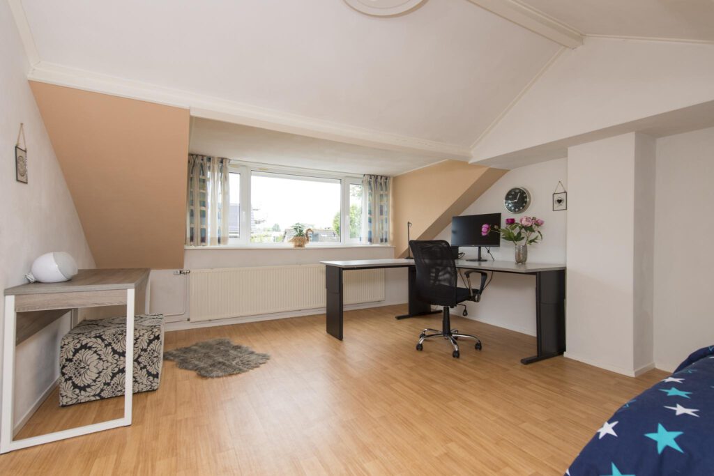 Ook deze verdieping is bereikbaar via een vaste trap en is verdeeld in een voorzolder en een slaapkamer. De voorzolder heeft een grote kast met handige bergruimte, een wastafel en een Velux dakraam. De vijfde slaapkamer strekt zich over de volledige diepte van de woning en is keurig afgewerkt met een linoleumvloer met houtmotief. Een groot dakkapel op de achterzijde van de woning geeft de slaapkamer enorm veel extra ruimte en zorgt voor veel prettige lichtinval.