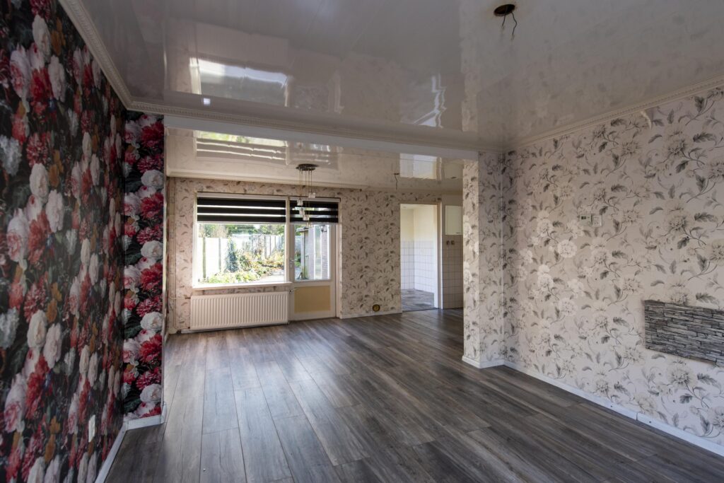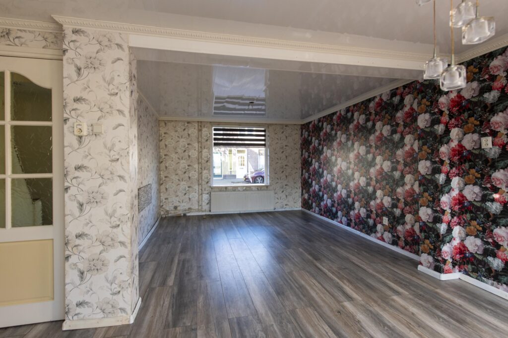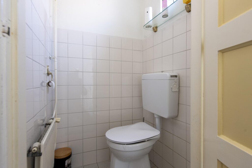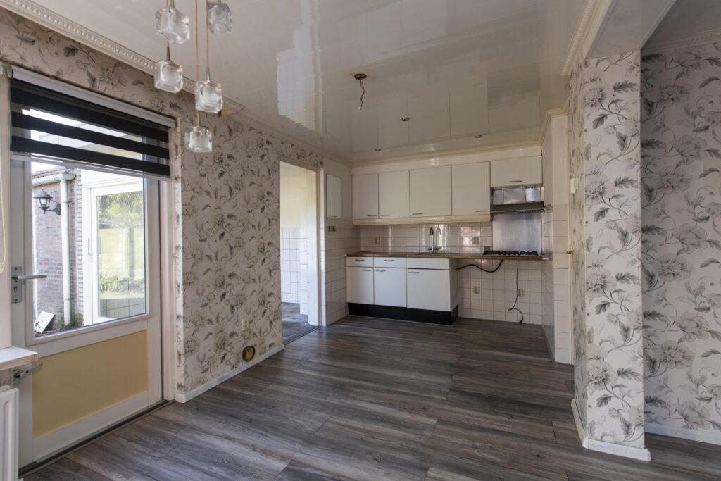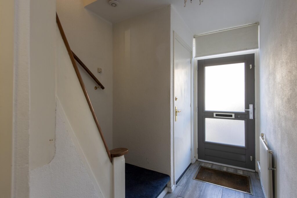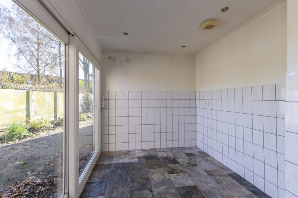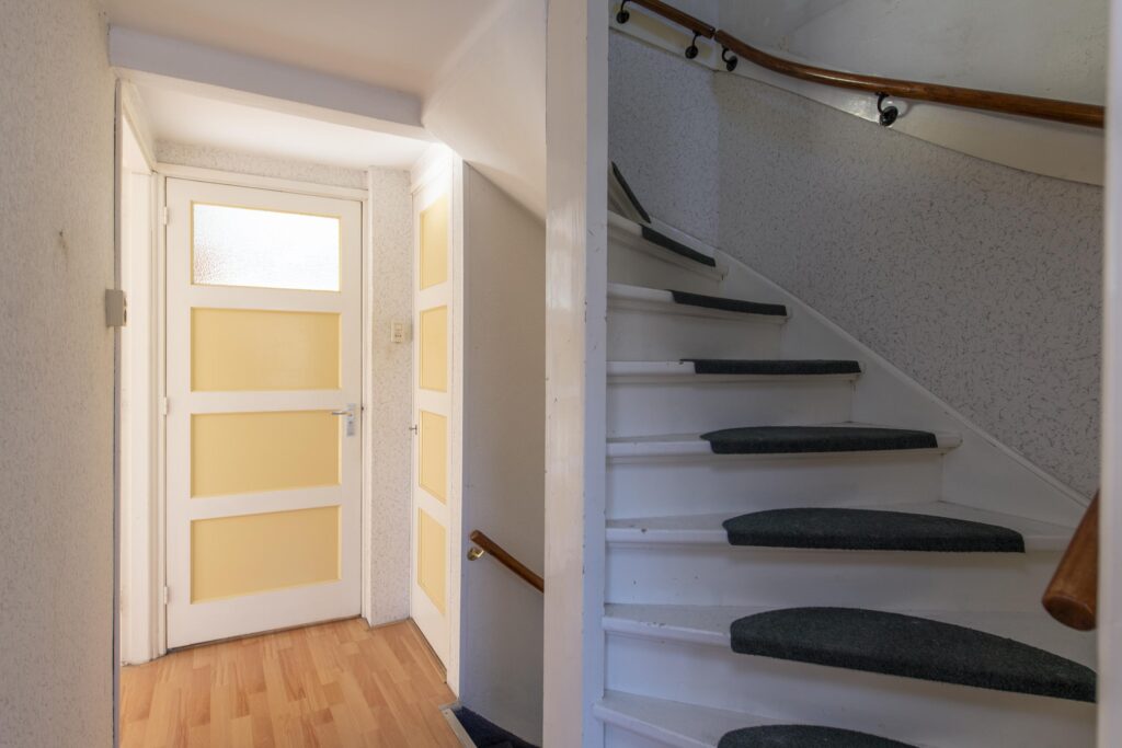 U betreedt de woning via de entree, waar zich het toilet en de trapopgang bevinden. De toiletruimte is betegeld en voorzien van een staand toilet. Vanuit de hal loopt u de woonkamer binnen. De woonkamer strekt zich uit over de volledige diepte van de woning. Door de grote raampartijen komt er veel prettige daglicht de ruimte binnen. De woonkamer biedt voldoende ruimte voor een ruime zit- en eethoek. De woonkamer staan in open verbinding met de keuken. De keuken heeft een eenvoudig keukenblok in rechte opstelling welke is voorzien van een RVS-spoelbak, gaskookplaat en een afzuigkap. Via de keuken komt u in de achtergelegen kamer, ideaal als bijvoorbeeld werk-, hobby- of speelkamer. Vanuit deze ruimte heeft u via een schuifpui toegang tot de achtertuin.