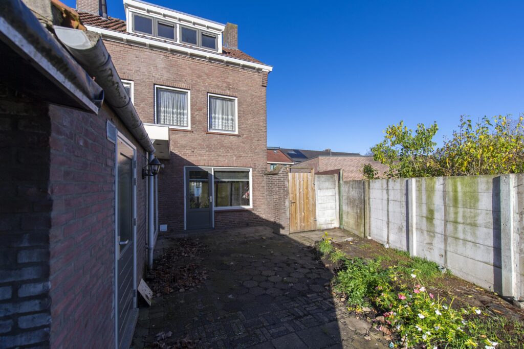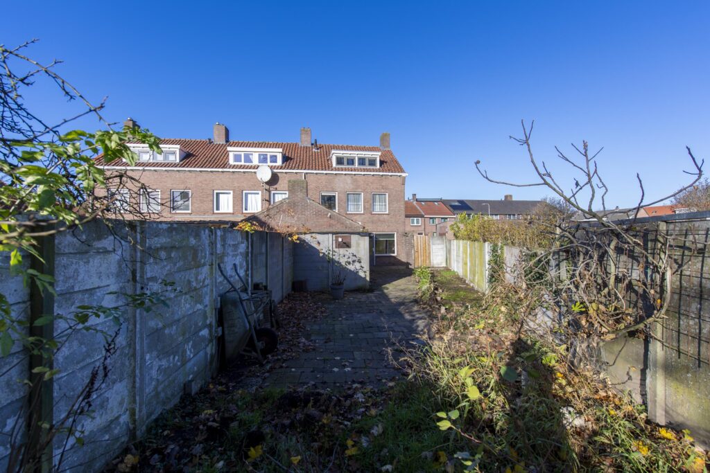 Direct aan de zijkant van de woning vindt u de eigen oprit van de woning. Vanaf de oprit heeft u via een poort toegang tot de achtertuin. Dankzij de diepte van de tuin kunt u de tuin eenvoudig naar eigen wens inrichting met bijvoorbeeld zitplekken, speelruimte en zelfs een moestuin. Aan de woning treft u een handige stenen berging, ideaal voor het stallen van de fietsen.