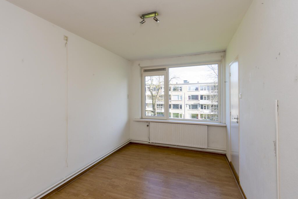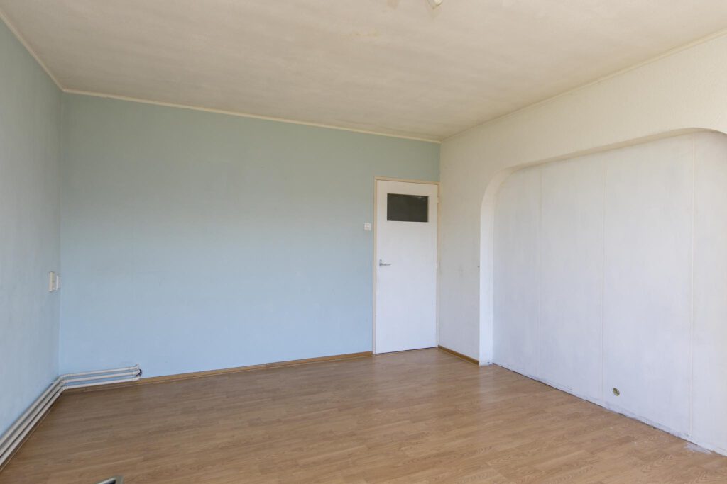 De woonkamer is gelegen aan de voorzijde van het appartement. Door de grote raampartij komt er veel prettig daglicht de ruimte binnen. De woonkamer is afgewerkt met een laminaatvloer en stucwerk op de wanden. De keuken heeft een keukenblok in rechte opstelling en een vaste kast. Vanuit de keuken heeft u toegang tot een balkon (ca. 3 m²).