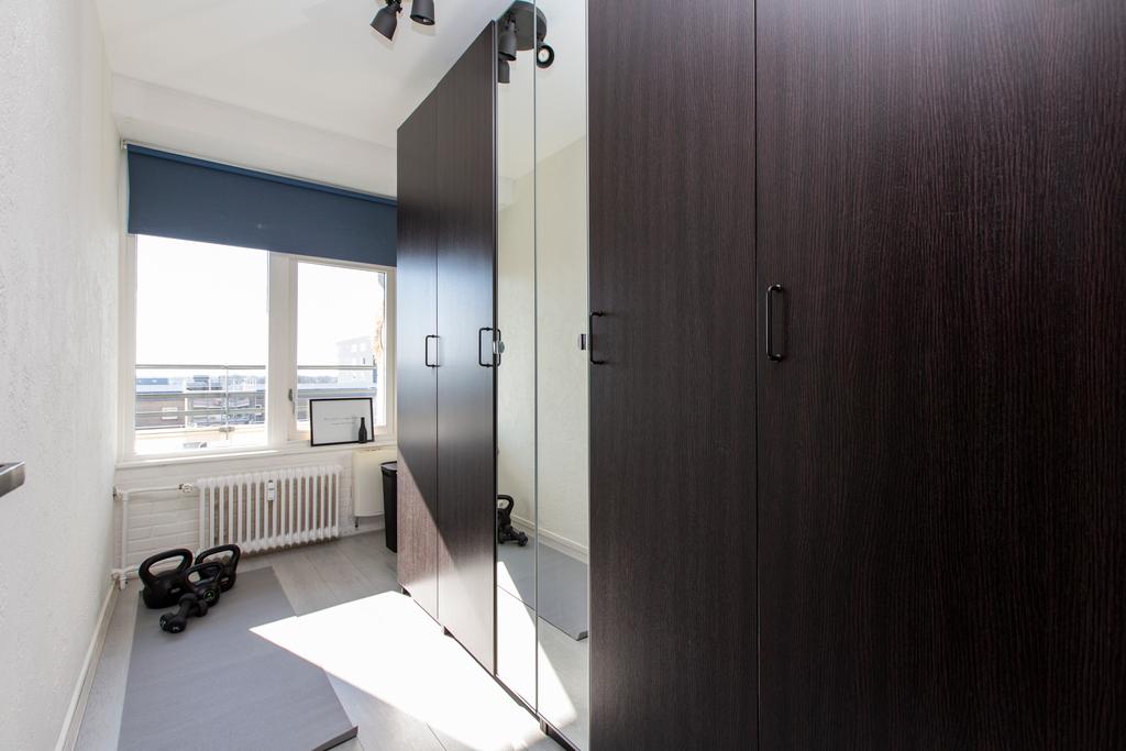 De ruime woonkamer strekt zich over de volledige diepte van het appartement en is verdeeld in een zit- en een eetgedeelte. Door de grote raampartijen komt er veel daglicht de ruimte binnen. Daarnaast heeft u een mooi uitzicht over de binnenstad aan de ene kant en het Spoorpark aan de andere kant. De keuken heeft een keukenblok in hoekopstelling en is voorzien van veel gemakken. Zo vindt u hier een RVS spoelbak, gaskookplaat, RVS afzuigkap, oven, vaatwasser, koelkast en een vriezer.