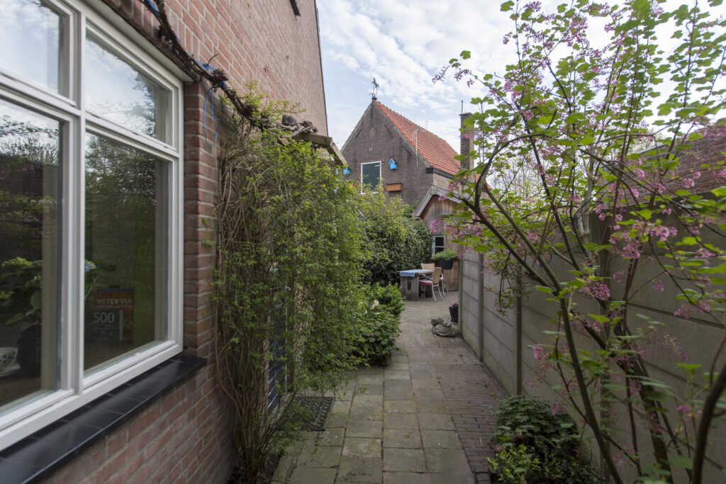 De woning heeft een privacy biedende en zeer diepe achtertuin van meer dan 50 meter welke is gelegen op het noordoosten. Door de diepte van de achtertuin is er altijd een plekje in de zon of juist in de schaduw te vinden. De groene tuin is speels in twee gedeelten verdeeld. Bij het voorste gedeelte vindt u een terras met sierbestrating. Via de ruime houten berging met riante veranda komt u in het tweede gedeelte van de tuin. De berging is voorzien van elektra en biedt zeer veel handige opbergruimte. Het ligging van het dak van de berging (zuid) leent zich uitstekend voor het leggen van zonnepanelen. De veranda met sierbestrating heeft een sfeervolle houtkachel. Hier is het een groot gedeelte van het jaar heerlijk vertoeven. Het tweede gedeelte van de tuin is voorzien van sierbestrating, plantenborders en een gazon. Ook vindt u in dit gedeelte van de tuin een statige notenboom. Helemaal aan de achterzijde van de tuin is een houtopslag aanwezig.