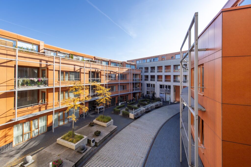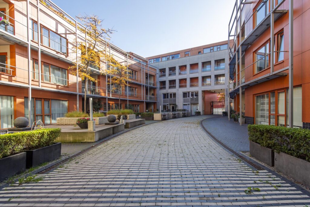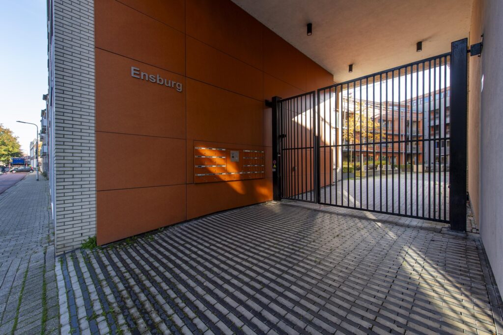 De binnenplaats van het complex is toegankelijk via een automatisch hek aan de Koestraat. Bij de gezamenlijke entree vindt u het bellenplateau en de brievenbussen. Vanaf de binnenplaats bereikt u de lift en het trappenhuis. Tevens is er vanuit hier toegang tot de kelder met de parkeerplaatsen, bergingen en de gemeenschappelijke fietsenstalling. Het appartement heeft een eigen parkeerplaats en berging in deze kelder. De parkeerkelder is met de auto bereikbaar vanaf de Enschotsestraat.