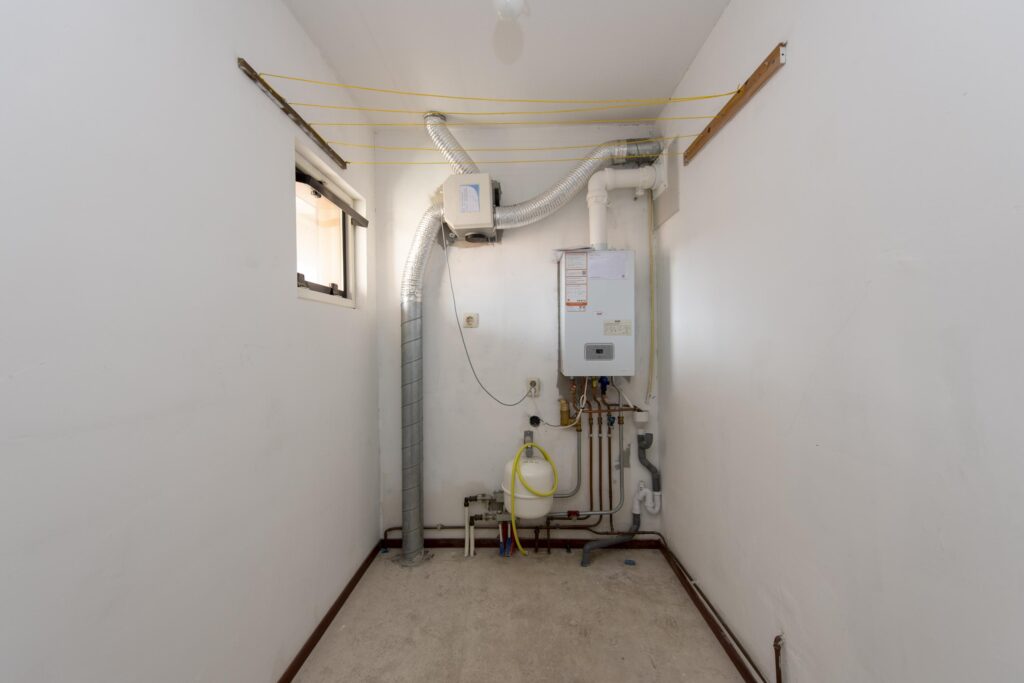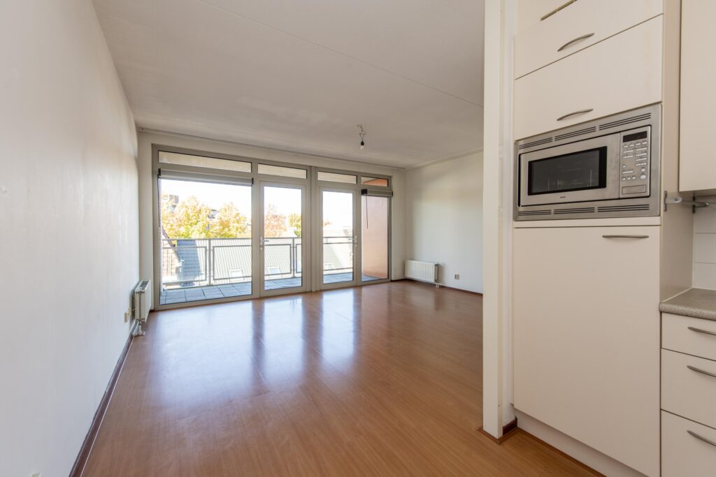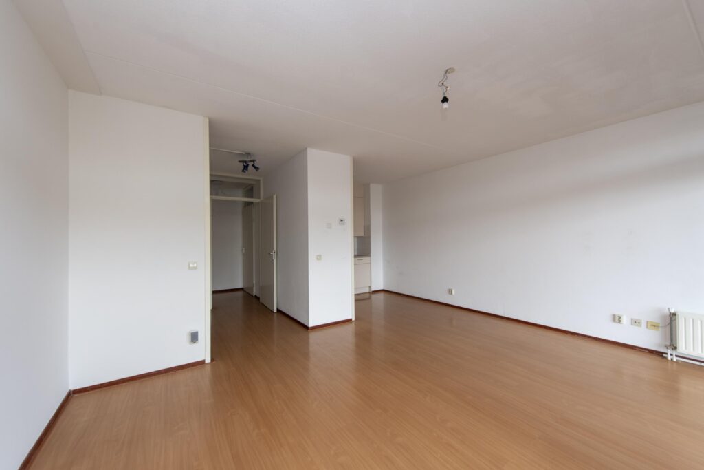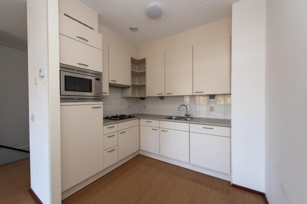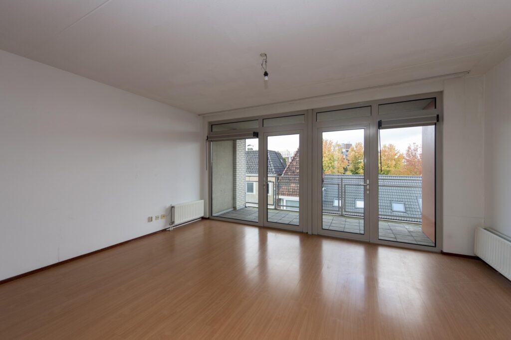Op deze verdieping vindt u de woonkamer, keuken, technische ruimte en een toiletruimte. De woonkamer is afgewerkt met een laminaatvloer en geeft via twee deuren toegang tot het tweede balkon. Ook dit balkon is ca. 10 m² groot. De keuken heeft een keukenblok in hoekopstelling en is voorzien van een koelkast, combi-oven, gaskookplaat, afzuigkap, RVS spoelbak en een vaatwasser. De toiletruimte is betegeld en heeft een hangend toilet en een fonteintje. In de technische ruimte vindt u naast handige bergruimte ook de aansluitingen voor de wasapparatuur, de opstelling van de CV-ketel (AWB, 2022) en de unit van de mechanische ventilatie.
