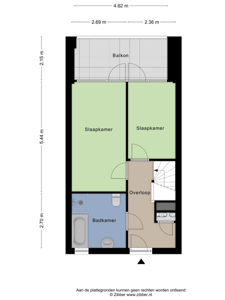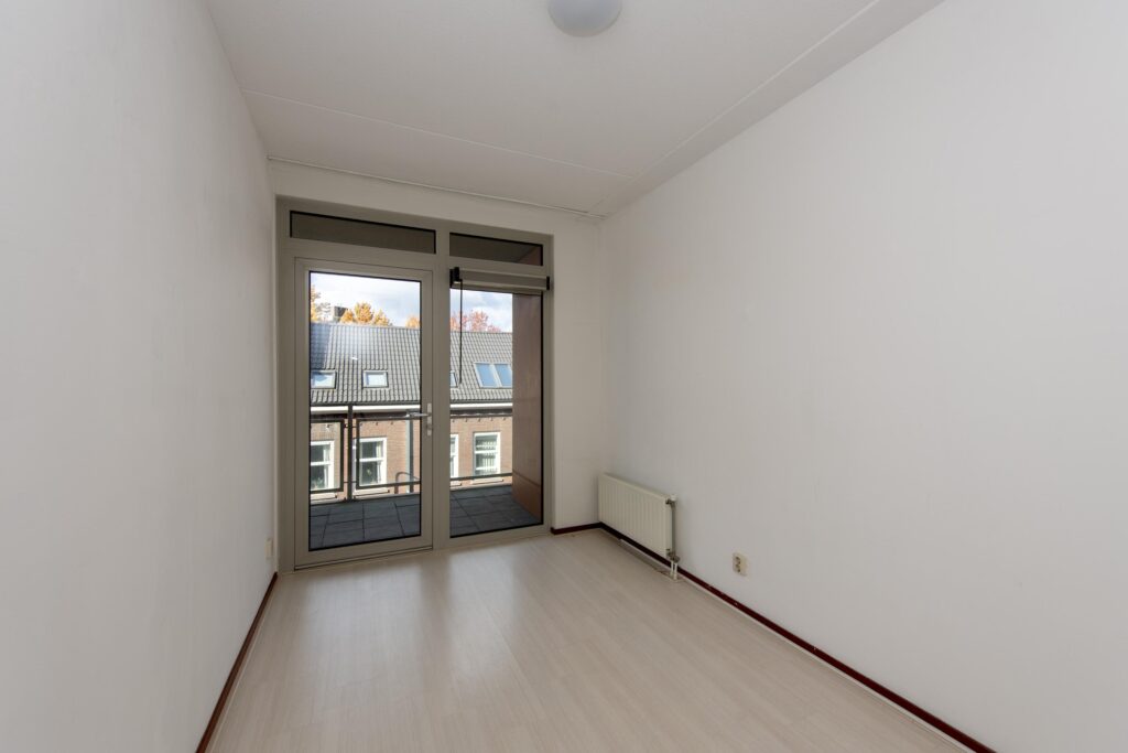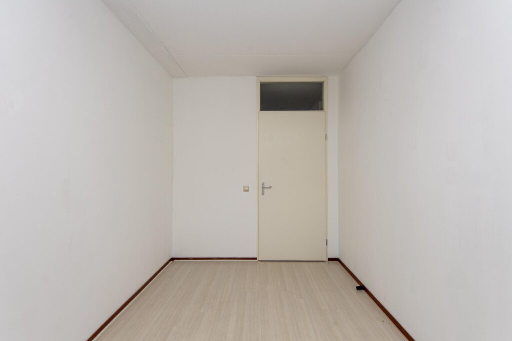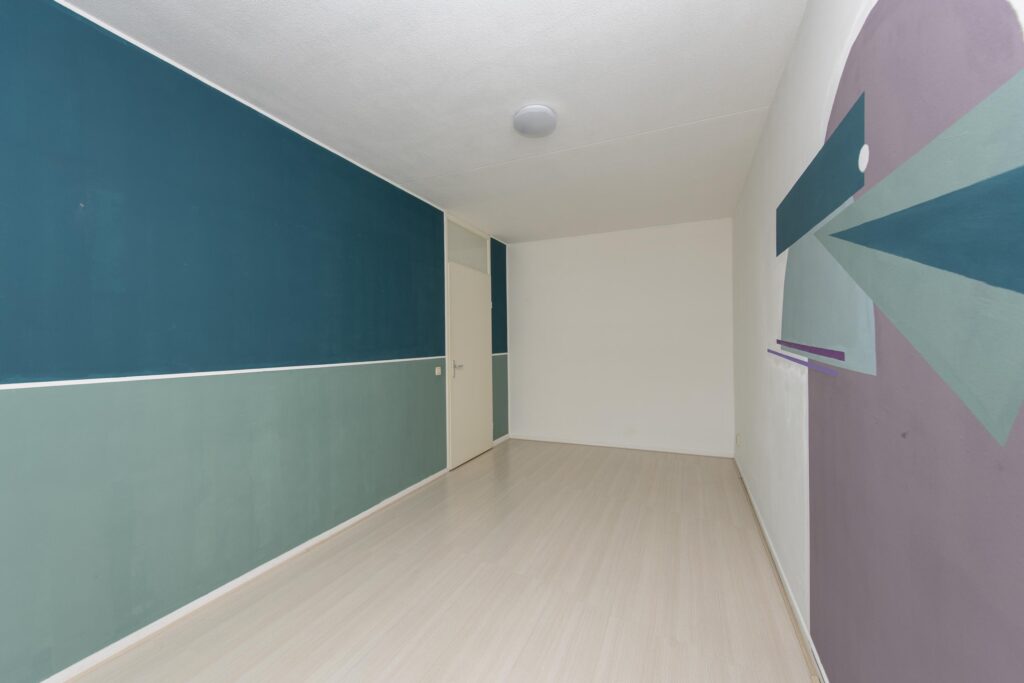 U komt het appartement binnen via de hal. Deze hal geeft toegang tot de twee slaapkamers, badkamer, meterkast en de trapopgang naar de tweede woonlaag. De twee slaapkamers zijn gelegen aan de voorzijde van het appartement. Beide geven met een deur toegang tot het balkon van ca. 10 m². De badkamer is betegeld en voorzien van een ligbad, douche, wastafel en een toilet.
