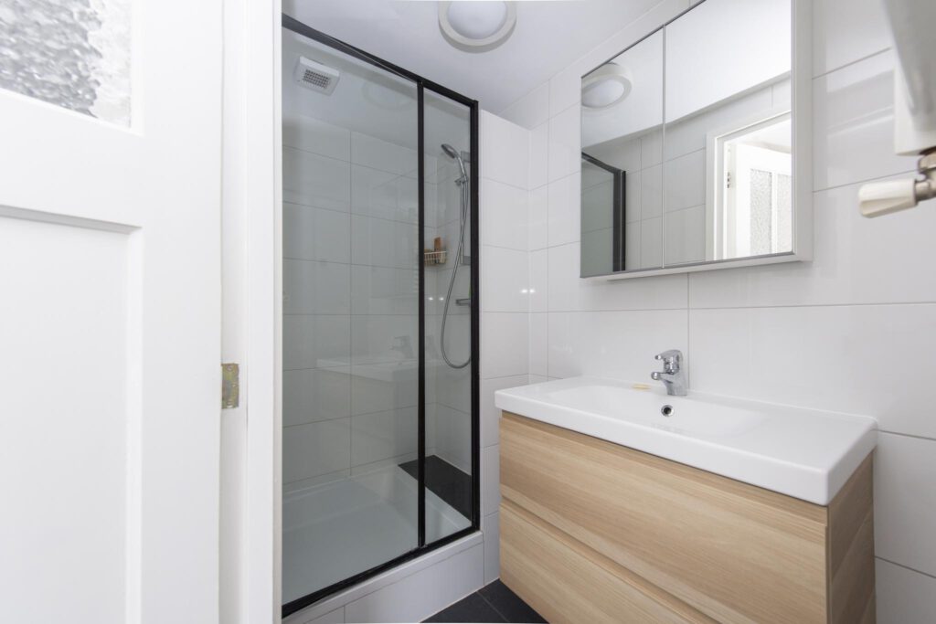 De overloop geeft toegang tot de twee zeer ruime slaapkamers op deze verdieping. De slaapkamer aan de voorzijde heeft een houten vloer en een vast kast. De slaapkamer aan de achterzijde heeft een laminaatvloer en een eigen wastafel met kastje. Beide slaapkamers zijn daarnaast strak afgewerkt met stucwerk op de wanden en plafonds.