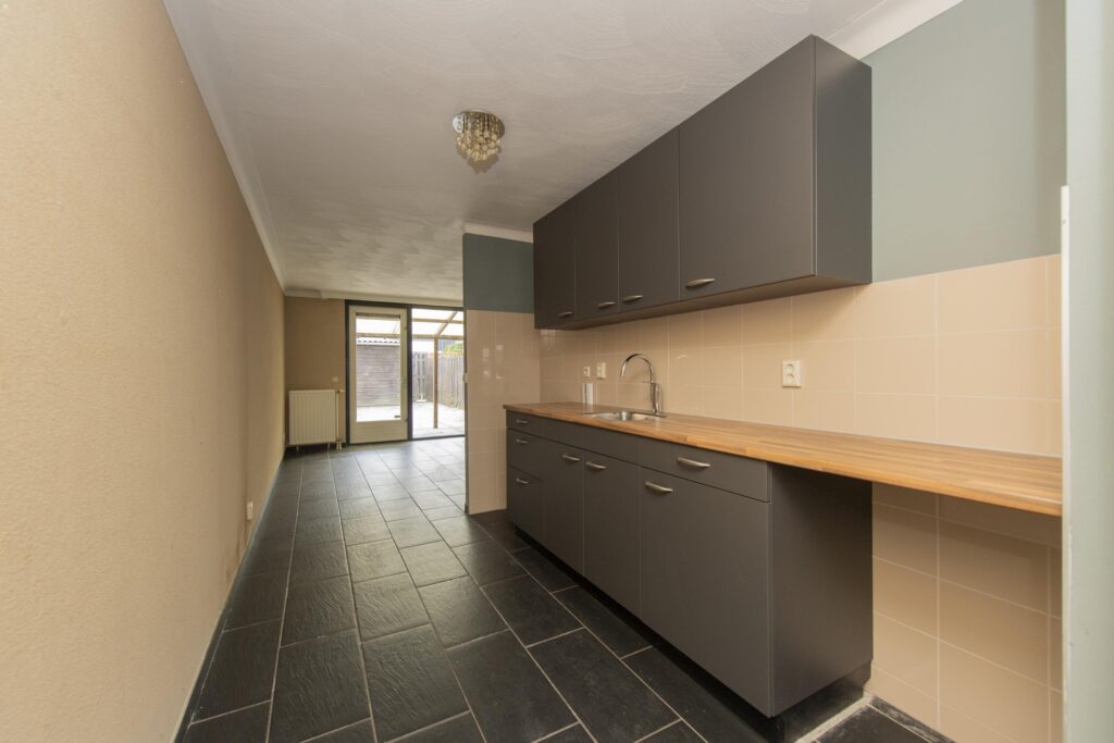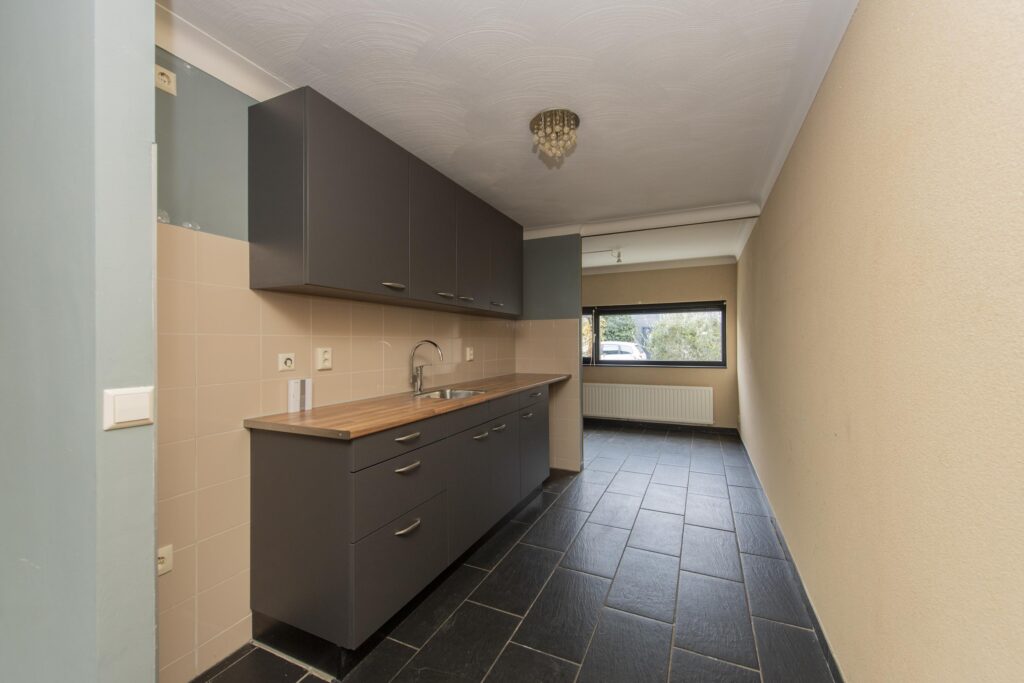 Via de voortuin bereikt u de woning. Bij binnenkomst betreedt u de ruimte die uitstekend kan dienen als eetkamer. Deze ruimte geeft toegang tot een hal en de keuken. In de hal zijn de trapopgang naar de eerste verdieping en de toiletruimte gelegen. De toiletruimte is betegeld en voorzien van een toilet en een fonteintje. De keuken heeft een keukenblok in rechte opstelling welke is voorzien van een RVS spoelbak. Zowel vanuit de hal als de keuken is de woonkamer bereikbaar. De woonkamer is gelegen aan de achterzijde van de woning. Door de grote raampartij komt er veel daglicht de ruimte binnen. Via een deur heeft u vanuit de woonkamer toegang tot de achtertuin.