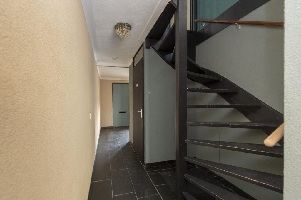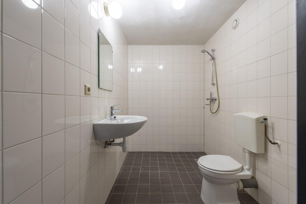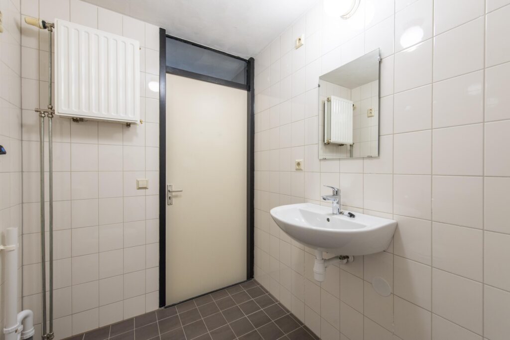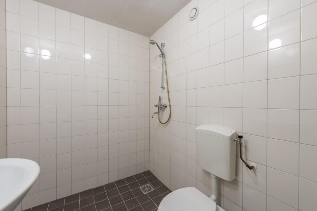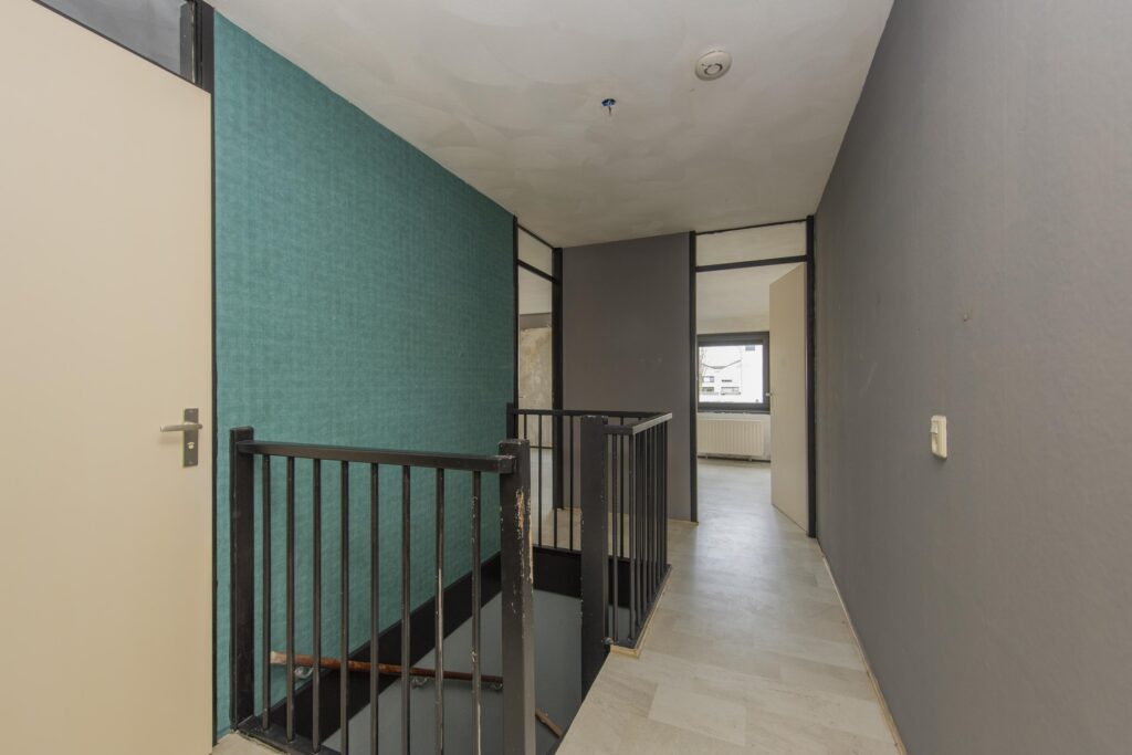 De overloop geeft toegang tot drie slaapkamers en de badkamer. De grootste slaapkamer is gelegen aan de voorzijde van de woning. Deze slaapkamer heeft een trap naar de tweede verdieping. De twee andere slaapkamers zijn gelegen aan de achterzijde van de woning. De grootste van deze kamers is voorzien van een ruime vaste kast. Naast handige bergruimte vindt u daarin ook de unit van de mechanische ventilatie. De mogelijkheid bestaat om hier de aansluitingen van de wasapparatuur te creëren. De badkamer is volledig betegeld en beschikt over een douche, toilet en een wastafel. Tevens vindt u hier de aansluitingen voor de wasapparatuur.
