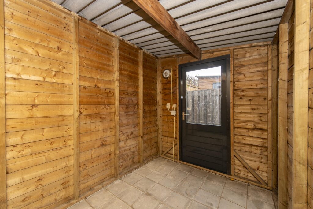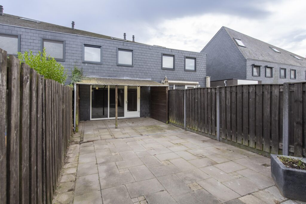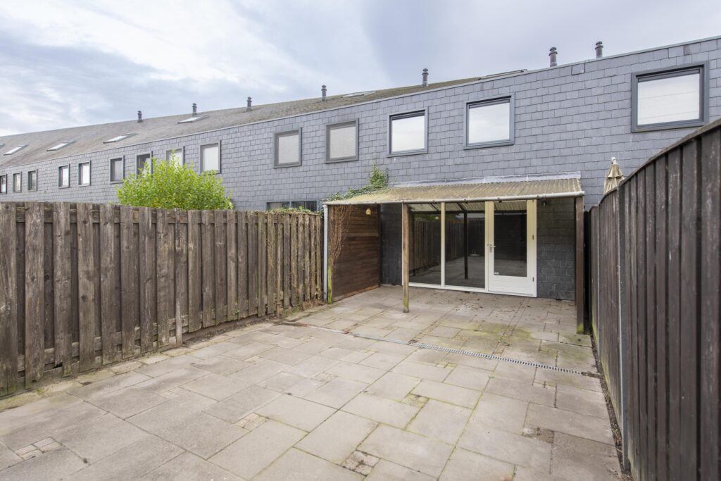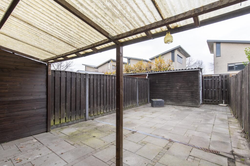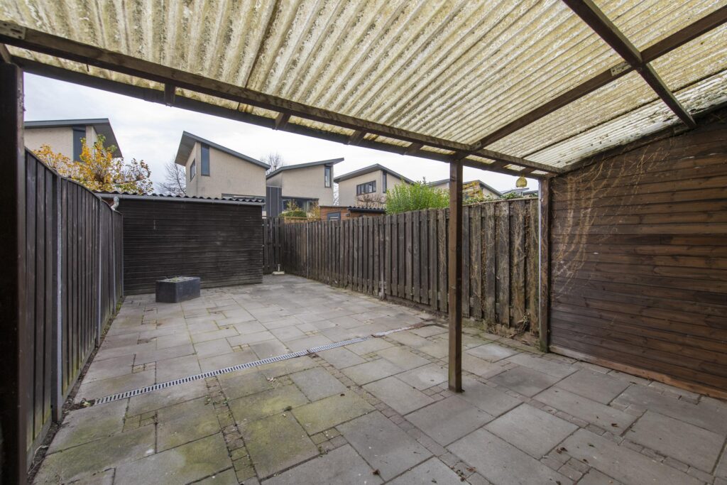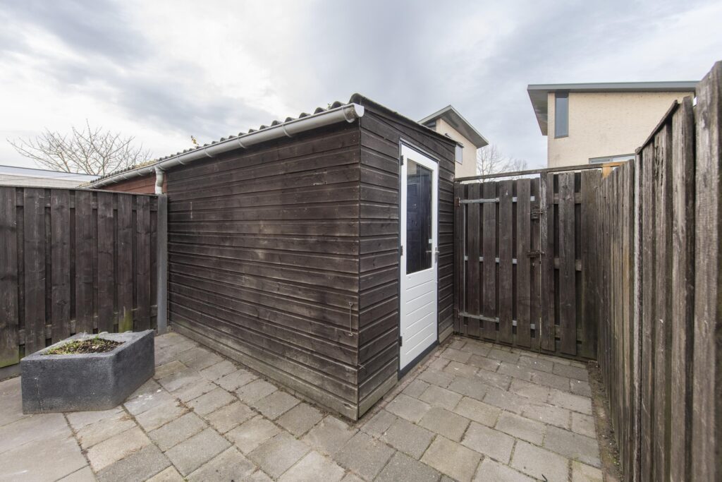 De woning beschikt over zowel een voor- als achtertuin. De achtertuin is gelegen op het noorden en is volledig voorzien van bestrating. Aan de woning staat een overkapping. Achterin de tuin vindt u de vrijstaande houten berging (met elektra) en de achterom. De achterom geeft toegang tot de brandgang achter de woningen.
