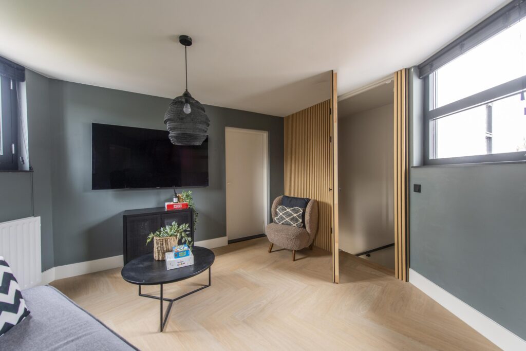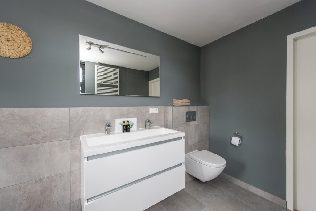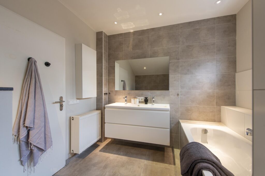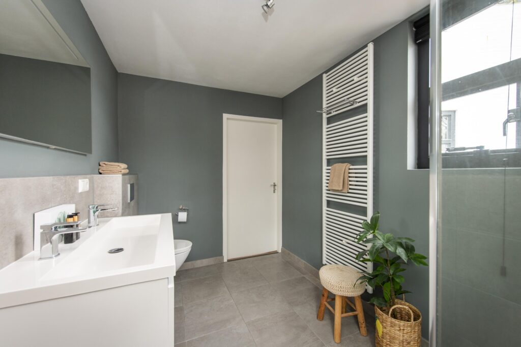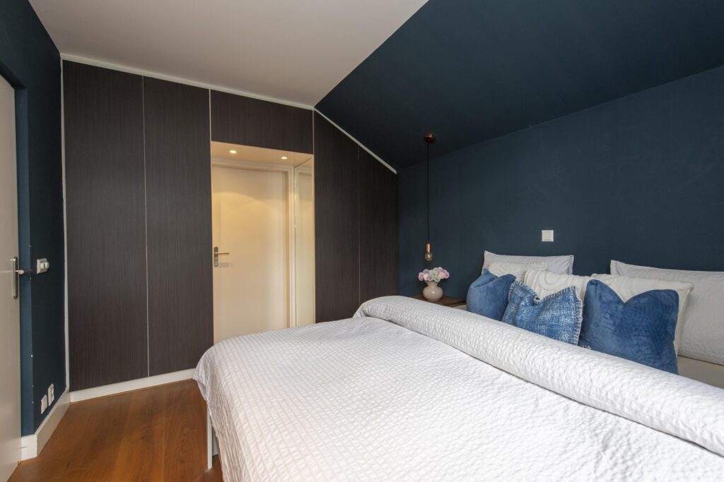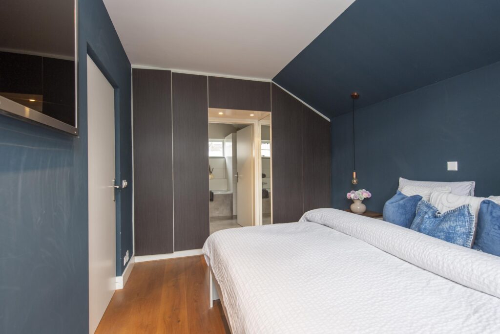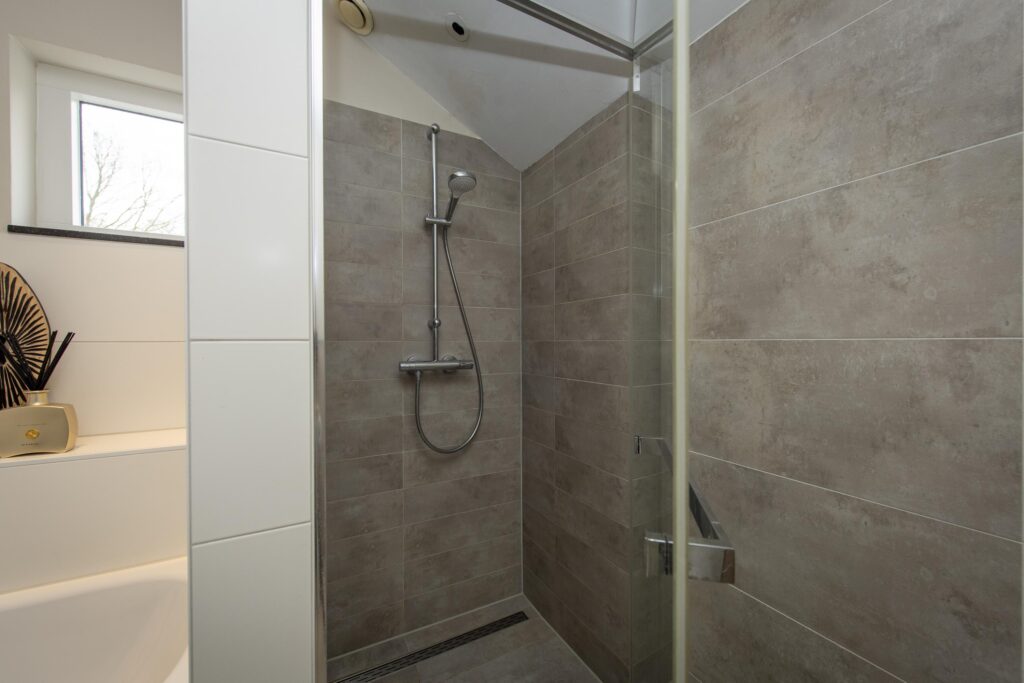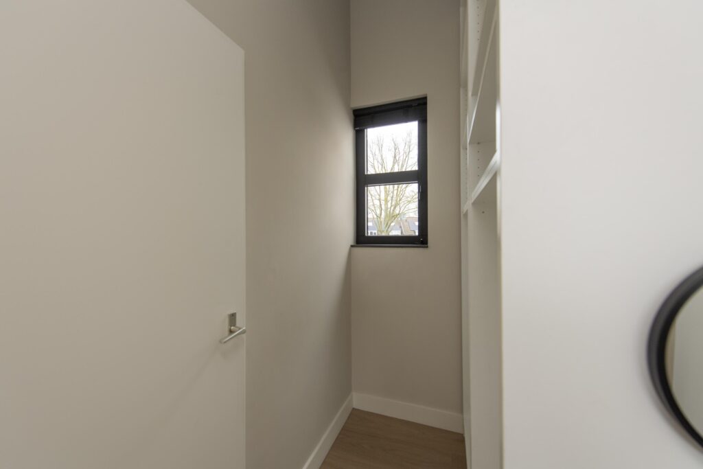 Via de trap bereikt u de ruime overloop, die door zijn royale afmetingen uitstekend geschikt is als extra kantoorruimte, tv-kamer of speelkamer. Vanuit deze centrale ruimte heeft u toegang tot de verschillende vertrekken op deze verdieping. Aan de linkerzijde bevindt zich een ruime slaapkamer met een speelse kapconstructie, wat zorgt voor extra sfeer en karakter. Naast deze slaapkamer ligt de badkamer, voorzien van een douche, dubbele wastafel in meubel en een toilet. Aan de rechterzijde van de verdieping bevindt zich de tweede slaapkamer, eveneens met een prettig lichtinval en speelse indeling. Vanuit deze slaapkamer heeft u toegang tot een walk-in closet en een aparte berging, ideaal voor het opbergen van kleding en bijvoorbeeld seizoensspullen. De slaapkamers en de overloop zijn strak afgewerkt met stucwerk op de wanden en een mooie PVC vloer. Ook zijn beide voorzien van airconditioning. Deze verdieping biedt door de indeling en de grote overloop verrassende mogelijkheden.