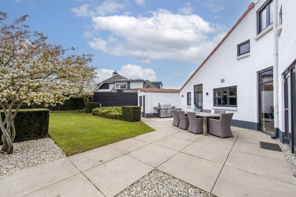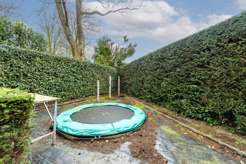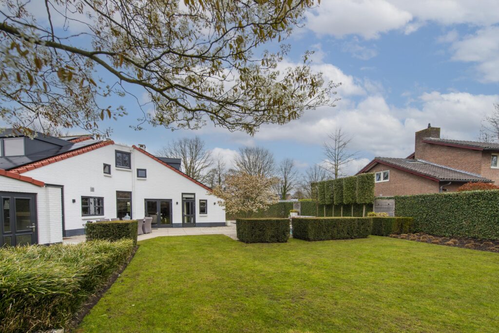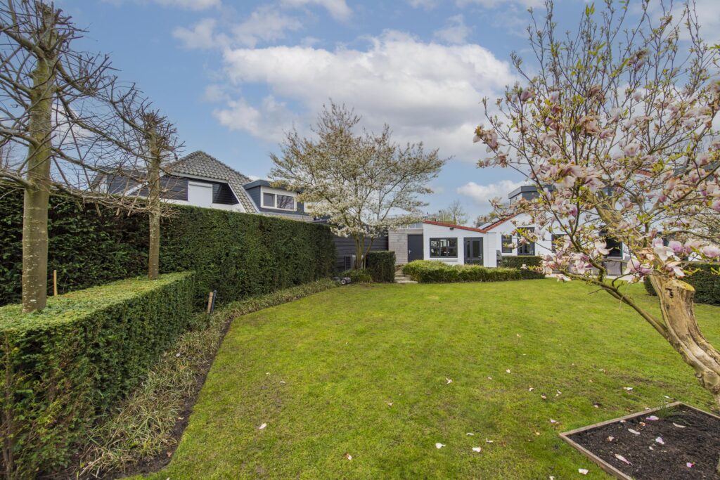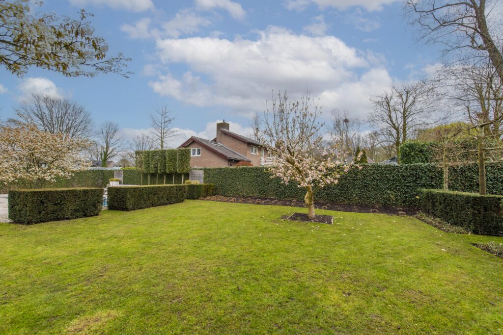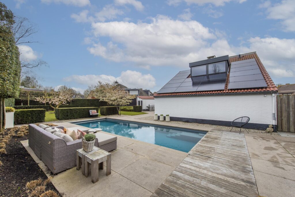 Rondom de woning ontvouwt zich een schitterende tuin die rust en ruimte uitstraalt. Aan de voorzijde wordt u verwelkomd door een strak vormgegeven voortuin met groene beplanting en een verzorgde oprit. De stijlvolle gevel, witte steen en de donkere kozijnen van de woning vormen samen een charmant geheel. Aan de achterzijde wacht een waar paradijs voor liefhebbers van het buitenleven. De royale tuin is fraai aangelegd met een riant gazon, meerdere terrassen en volwassen groen. De achtertuin is gelegen op het zonnige zuidoosten en dankzij de indeling is er altijd wel een plekje in zon of juist schaduw te vinden. Als een echt unique selling point loopt de bestrating van de tuin sierlijk door naar het zwembad. Het zwembad is prachtig aangelegd met sierbestrating en een vlonder. Dit creëert idyllische plekjes, met een heerlijk uitzicht op het zwembad. Het zwembad heeft recent een update gehad zodat deze via een app aangestuurd kan worden. Via de zijkant van de woning is vanuit de tuin de voorzijde van de woning direct bereikbaar. Achterin de tuin is een speelhoek met een trampoline en rekstok aanwezig.