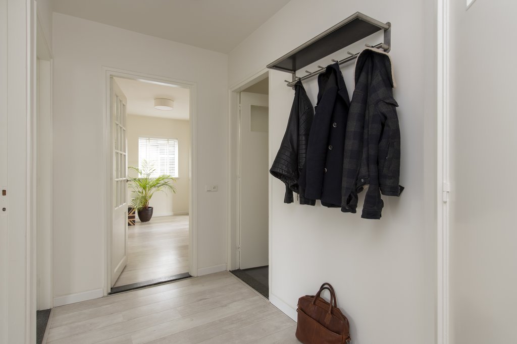 De hal is afgewerkt met een laminaatvloer en stukwerk op de wanden en plafond. Daarnaast beschikt deze over de meterkast en verleent hij toegang tot alle vertrekken van het appartement.