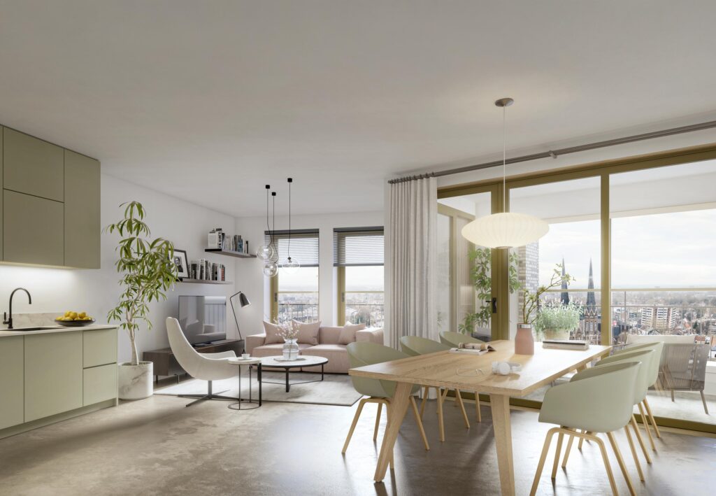 In de verkoopbrochure (deze is zowel online als fysiek beschikbaar) vindt u gedetailleerde projectbeschrijvingen, realistische impressies van het gebouw en de verschillende woningtypes, sfeerplattegronden met voorbeeldinrichtingen. U bent natuurlijk ook van harte welkom om de fysieke brochure op te halen bij een van de makelaarskantoren. U hoeft hiervoor geen afspraak te maken.
