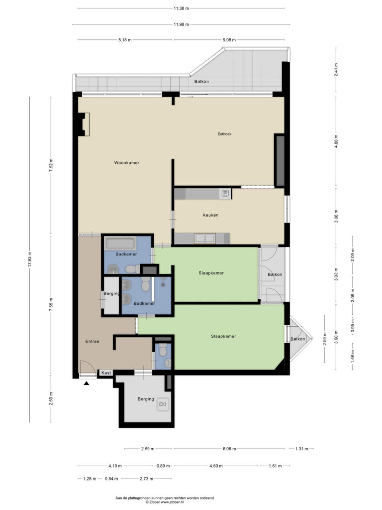 – drie balkon samen circa 24 m² met uitzicht op het omliggende groen;
