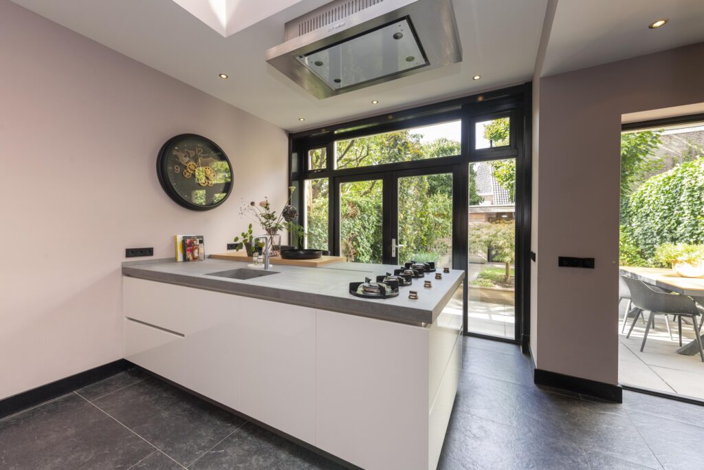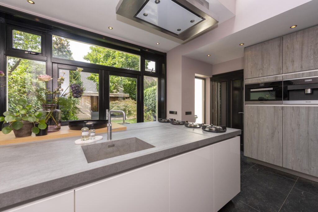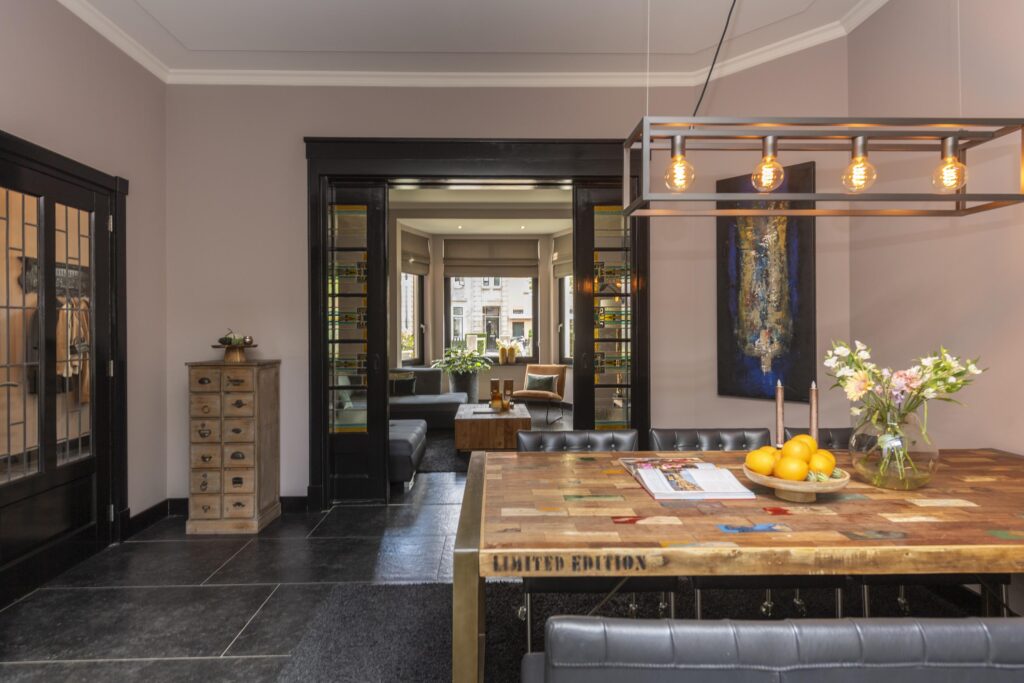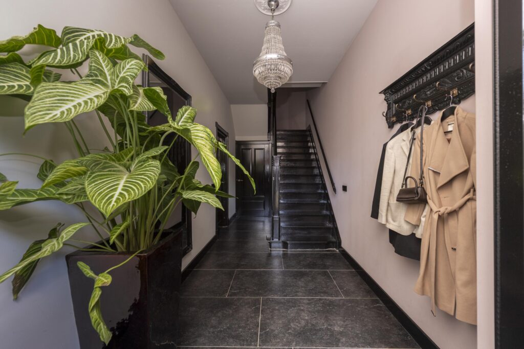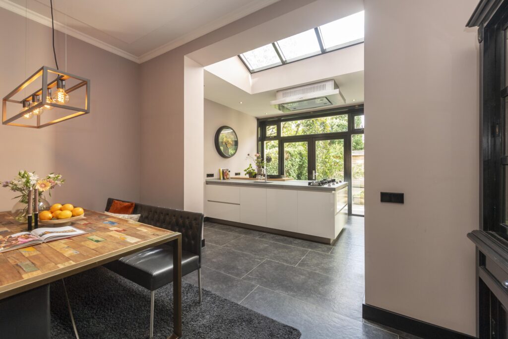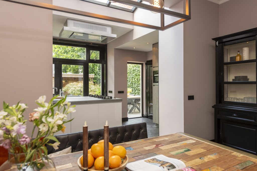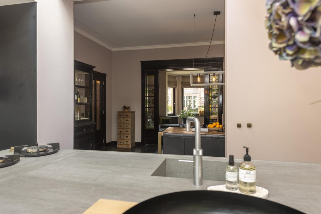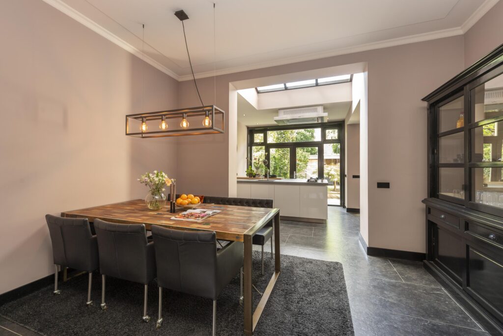 We stappen de woning binnen via de statige entree waardoor u direct wordt verrast door de ruimtelijke indeling van de begane grond. De entree is royaal opgezet en biedt toegang tot de meterkast, trapopgang, twee kasten en het woongedeelte. De sfeervolle woonkamer aan de voorzijde van de woning kenmerkt zich door een charmante erker, die zorgt voor veel natuurlijk lichtinval en een prachtig uitzicht op de rustige en groene straat. De ensuite-indeling met schuifdeuren met het originele Glas-in-lood, leidt je naar de ruime eetkamer, een ideale plek voor lange diners en andere gezellige momenten. De eetkamer staat in directe verbinding met de moderne keuken aan de achterzijde. Deze keuken heeft een royaal eiland, een kastenwand en hoogwaardige inbouwapparatuur. De keuken is voorzien van een RVS spoelbak met Quooker, vaatwasser, 4-pits gasfornuis, afzuigkap, combi-oven, koffieautomaat, koelkast en een vriezer. Ook heeft de keuken een lichtstraat voor extra lichtinval. Dankzij de dubbele openslaande tuindeuren stap je zo de zonnige achtertuin in, perfect voor wie binnen en buiten graag laat samenkomen. Naast de keuken bevindt zich een praktische gang met extra kastruimte, de toiletruimte en toegang tot de tuin. De ruime toiletruimte is betegeld en voorzien van een hangend toilet en een fonteintje met meubel. De volledige begane grond is afgewerkt met een mooie tegelvloer (met vloerverwarming) en strak stucwerk op de wanden en plafonds.