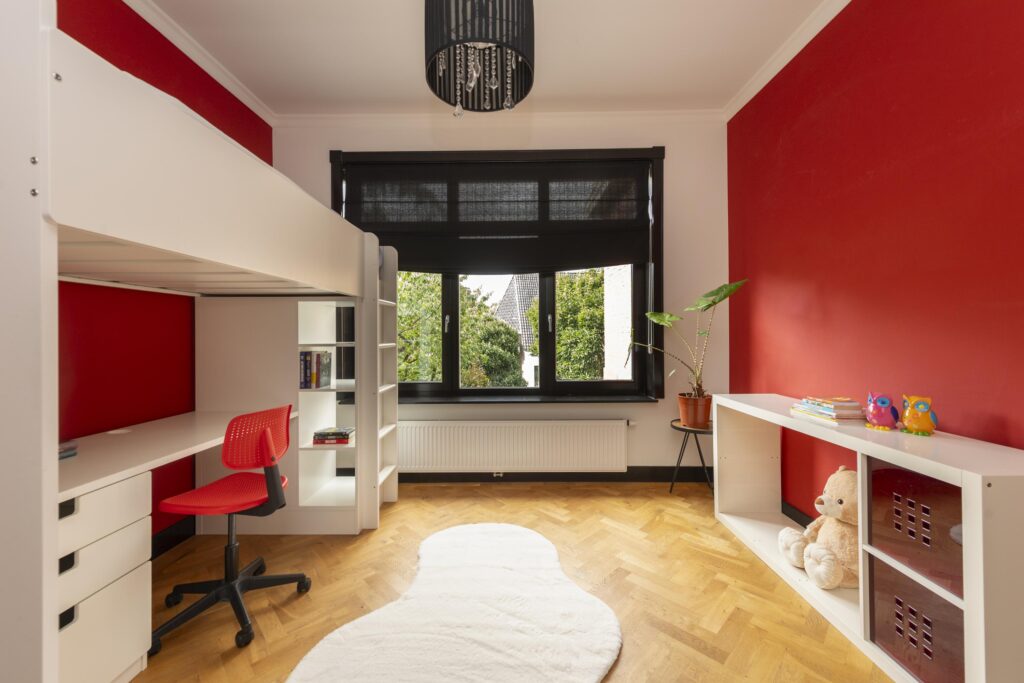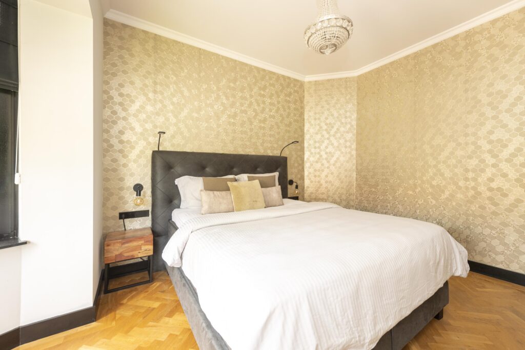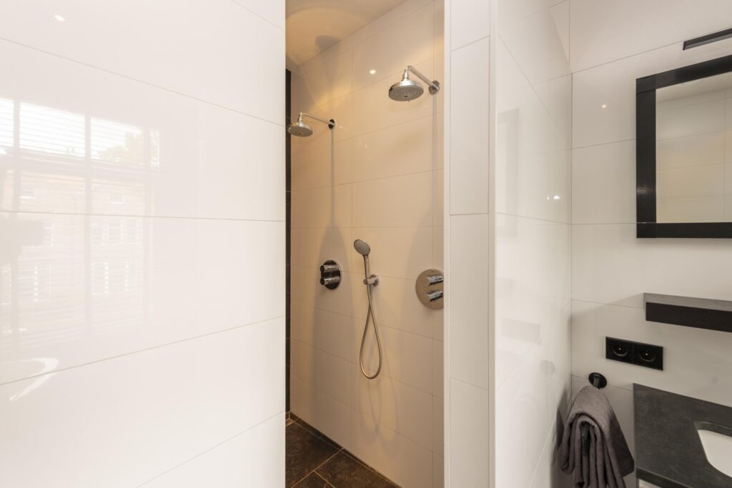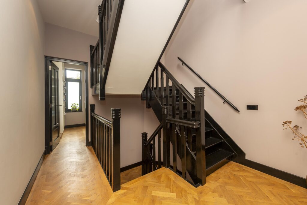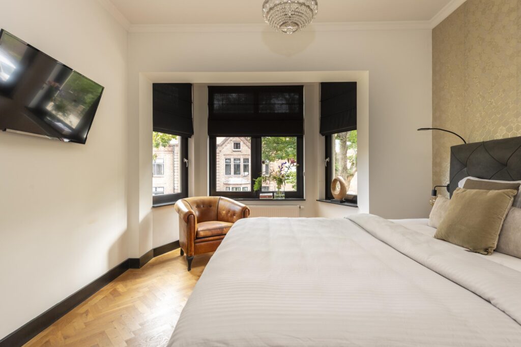 Ook de eerste verdieping biedt volop ruimte en comfort. De overloop geeft toegang tot twee slaapkamers, de badkamer, separate toiletruimte en de walk-in closet. Aan de voorzijde ligt een royale slaapkamer met karakteristieke erker die zorgt voor veel lichtinval en een sfeervolle uitstraling. De tweede slaapkamer is gelegen aan de achterzijde van de woning. Beide slaapkamers zijn prachtig afgewerkt met een parketvloer en strak stucwerk op de wanden. Ook is een van de wanden voorzien van behang. De moderne badkamer is volledig betegeld en voorzien van een luxe ligbad, inloopdouche met dubbele douche en een dubbele wastafel in meubel. Ook is de badkamer voorzien van vloerverwarming. Hier kunt u dus optimaal genieten en ontspannen. De separate toiletruimte heeft een hangend toilet. Wat deze verdieping extra bijzonder maakt, is de walk-in closet. Deze biedt een luxe toevoeging met volop bergruimte.