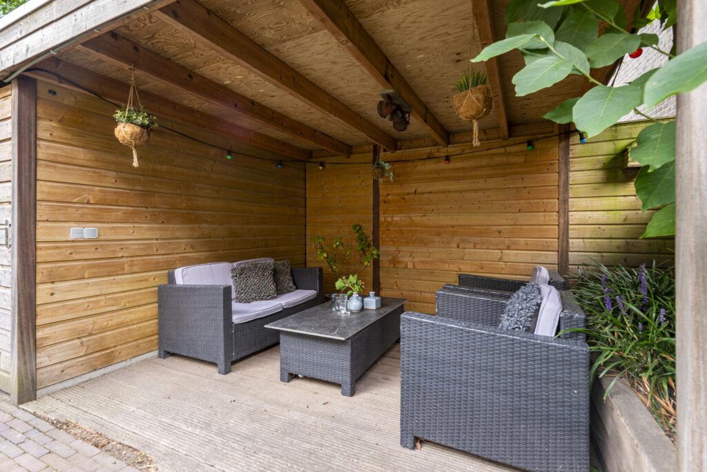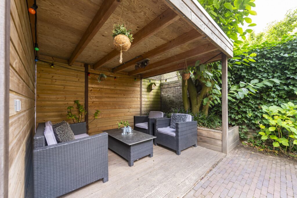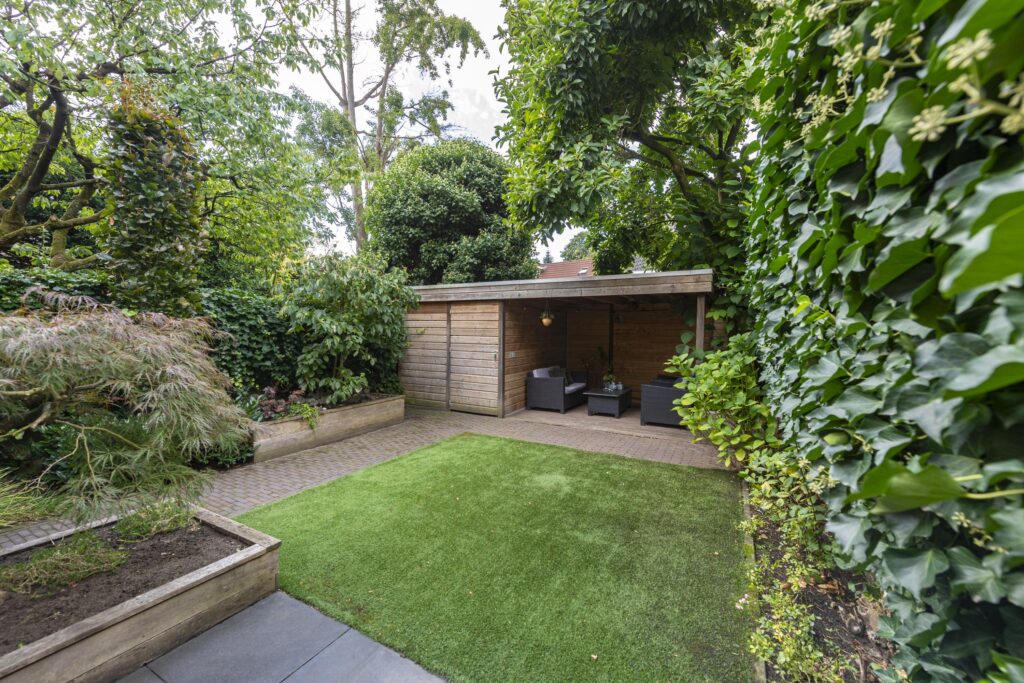 Zodra u de woning nadert, wordt u verwelkomd door een verzorgde voortuin die het karakter van het huis prachtig benadrukt. Hier begint het gevoel van thuiskomen al voordat u de voordeur binnenstapt. De achtertuin is een oase van rust en privacy. Met een fraai aangelegd terras direct achter de woning is er volop ruimte om gezellig buiten te dineren of lange zomeravonden door te brengen. De sierbestrating, het kunstgras en de stijlvolle beplanting zorgen voor een onderhoudsvriendelijke en groene uitstraling. De tuin is smaakvol ingedeeld met een mix van borders en hagen, waardoor er een fijne balans is tussen groen en gebruiksgemak. Dankzij de ligging op het zonnige zuidwesten geniet u hier optimaal van de zon, en is er altijd een fijn plekje te vinden. Achterin de tuin vindt u de vrijstaande houten berging met overkapping. De tuin is een heerlijke ruimte die het wooncomfort compleet maakt.