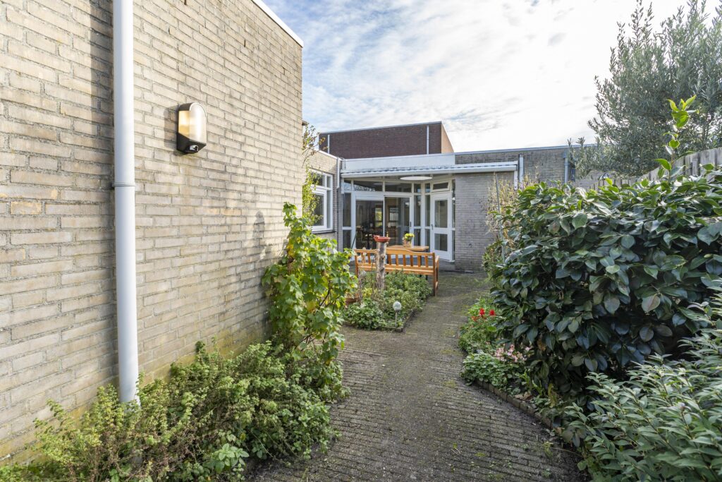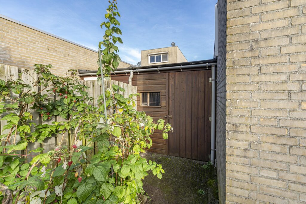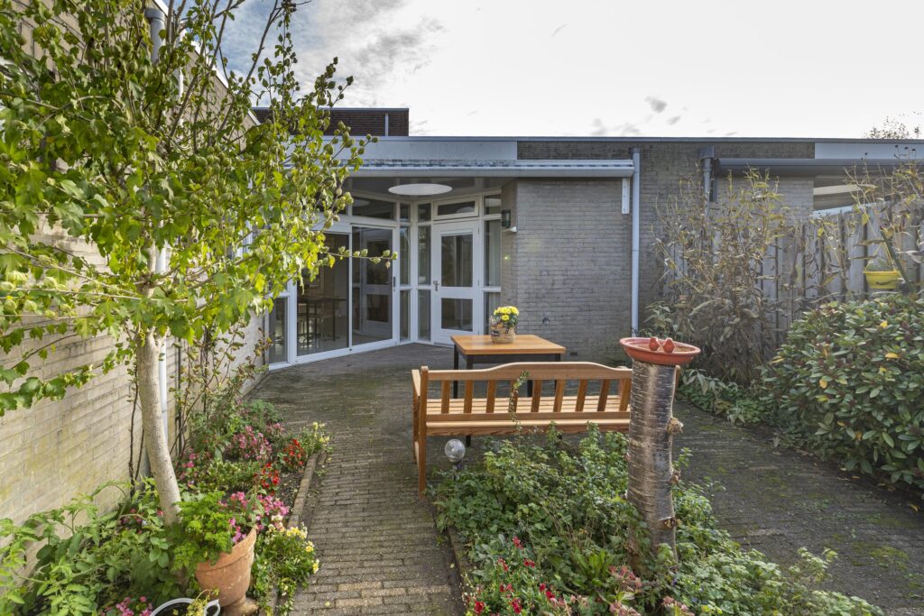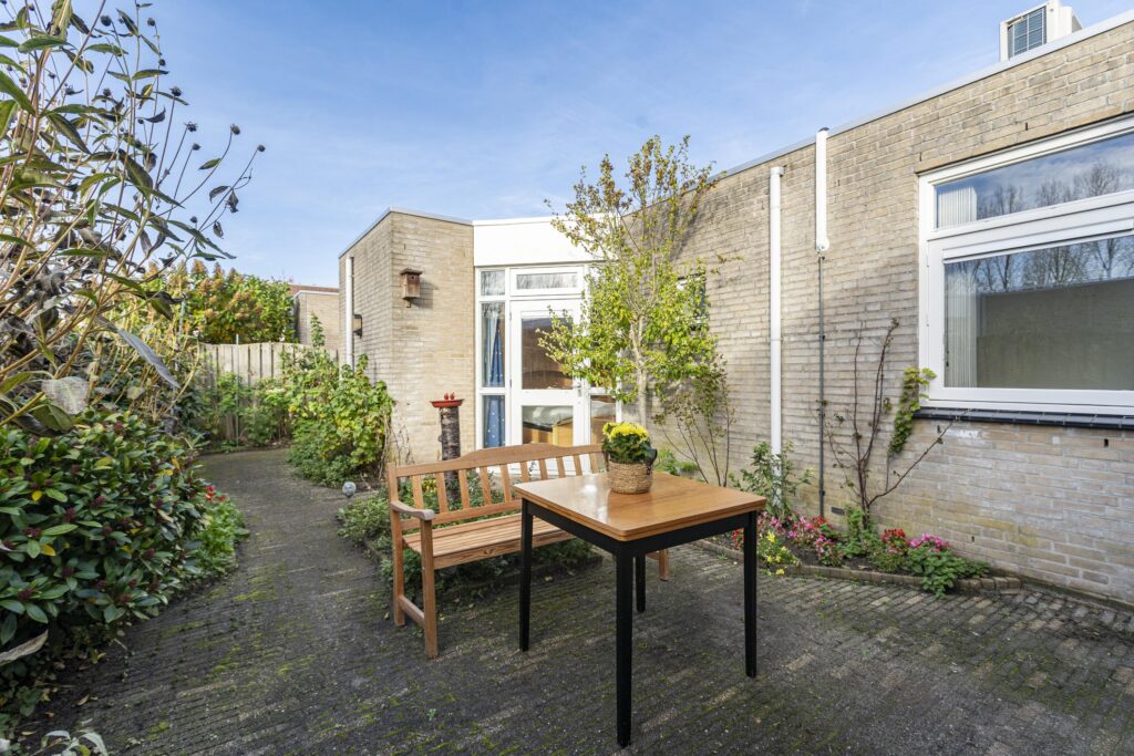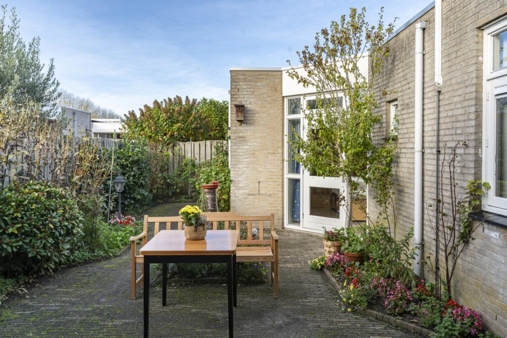 Zodra u deze tuin instapt, voelt u meteen de rust en privacy die deze plek te bieden heeft. Hier kunt u heerlijk ontspannen, genieten van een kop koffie of gezellig borrelen met vrienden. De tuin is onderhoudsvriendelijk, met een fijne combinatie van bestrating en groene borders vol kleur. De planten en struiken zorgen voor een levendige, natuurlijke uitstraling, terwijl het terras volop ruimte biedt voor een eettafel of loungeset. Dankzij de beschutte ligging is er altijd een fijn plekje te vinden. Achterin de tuin vindt u een houten berging voorzien van elektra.