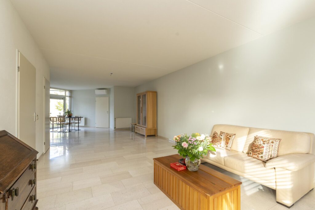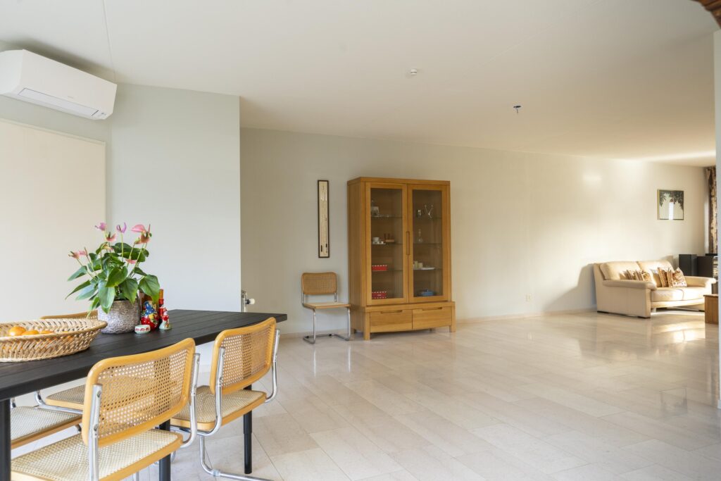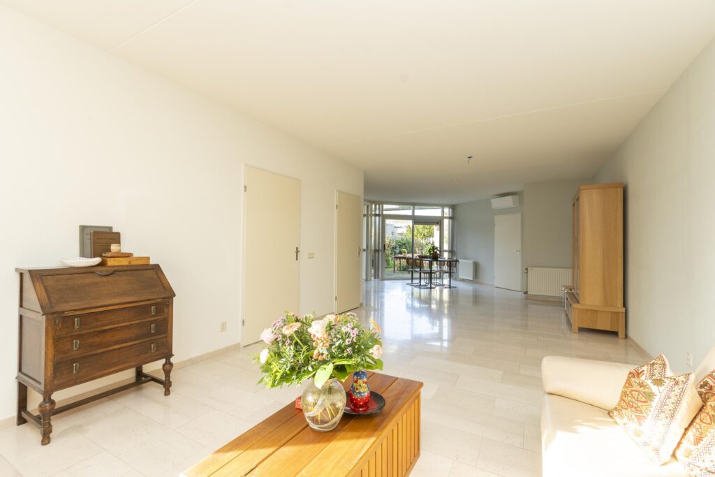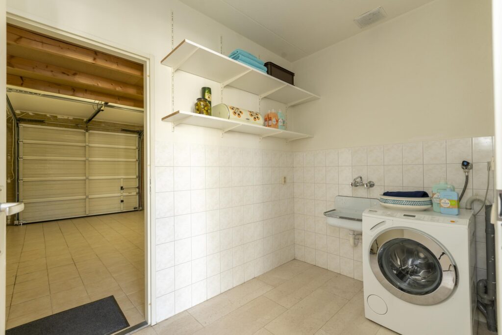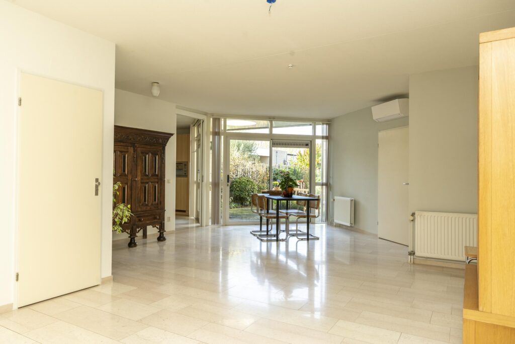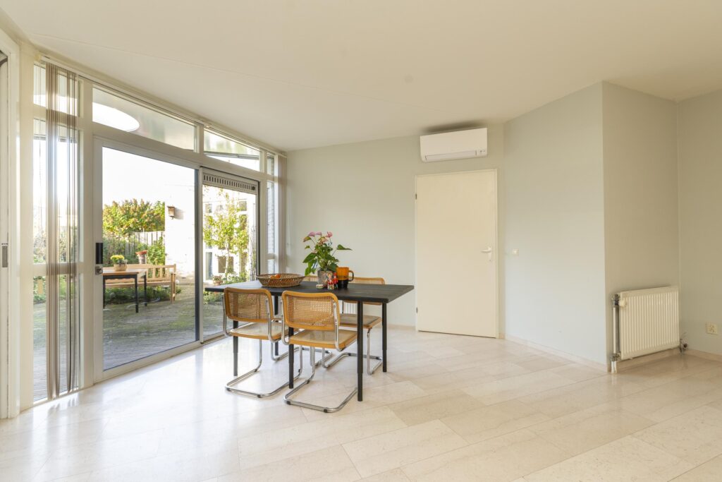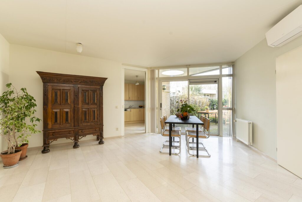 Wanneer u deze sfeervolle semi-bungalow binnenstapt, merkt u meteen hoe prettig het wonen is. De ruimte, het licht en de praktische indeling zorgen ervoor dat u zich direct thuis voelt. Alles is erop gericht om comfortabel te leven, met het gemak van gelijkvloers wonen en toch volop ruimte.Via de overdekte entree komt u binnen in de hal, die toegang geeft tot de royale woonkamer. Dankzij de grote ramen geniet u hier de hele dag van natuurlijk licht. Ook is er airconditioning aanwezig. De woonkamer loopt over in een ruime eethoek, waar u gezellig kunt tafelen met familie of vrienden. Aangrenzend vindt u de keuken. De keuken heeft een keukenblok in hoekopstelling en is voorzien van een keramisch kookplaat, RVS afzuigkap, vaatwasser, RVS spoelbak, koelkast en een combi-oven. Grenzend aan de keuken bevindt zich de bijkeuken, waar u extra opbergruimte en aansluiting voor wasapparatuur vindt. Vanuit hier heeft u directe toegang tot de inpandige garage, waardoor u altijd droog binnenkomt en praktische bergruimte binnen handbereik heeft. De volledige begane grond is afgewerkt met spuitwerk op de wanden en een tegelvloer.