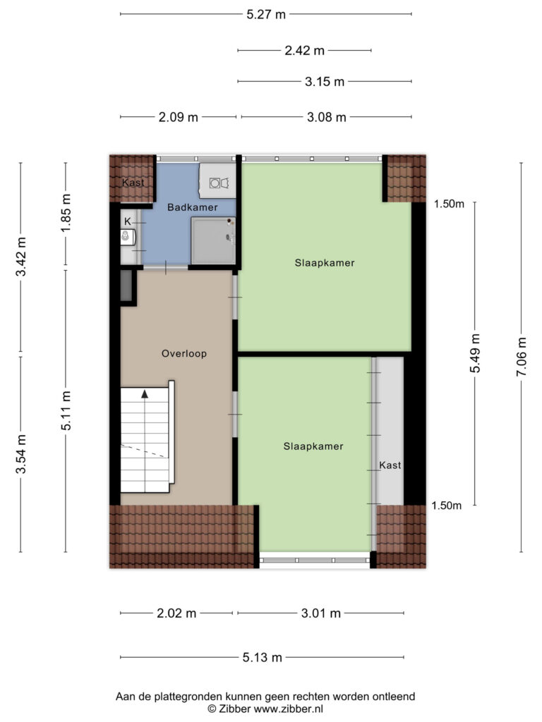 Tweede verdieping & bergzolder: