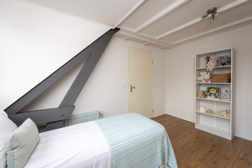 Op deze verdieping wordt u verwelkomd op de ruime overloop. Deze verdieping biedt toegang tot wederom twee royale slaapkamers. De slaapkamer aan de voorzijde beschikt over een dakkapel en een mooie ingebouwde kastenwand (2025), ideaal voor kleding. Ook de slaapkamer aan de achterzijde heeft een dakkapel. Ook deze kamer is comfortabel van formaat en eenvoudig te gebruiken als slaap- of werkkamer. Daarnaast vindt u op deze verdieping een tweede badkamer (2023), ingericht met een douche en aansluitingen voor een wasmachine en droger. Daarnaast vindt u hier de opstelling van de CV-ketel (Nefit, 2024) netjes weggewerkt in een kast. Via een vaste trap op de overloop van deze verdieping bereikt u de bergzolder. Deze ruimte is ideaal voor het opbergen van bijvoorbeeld seizoensspullen en koffers.