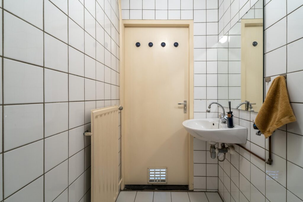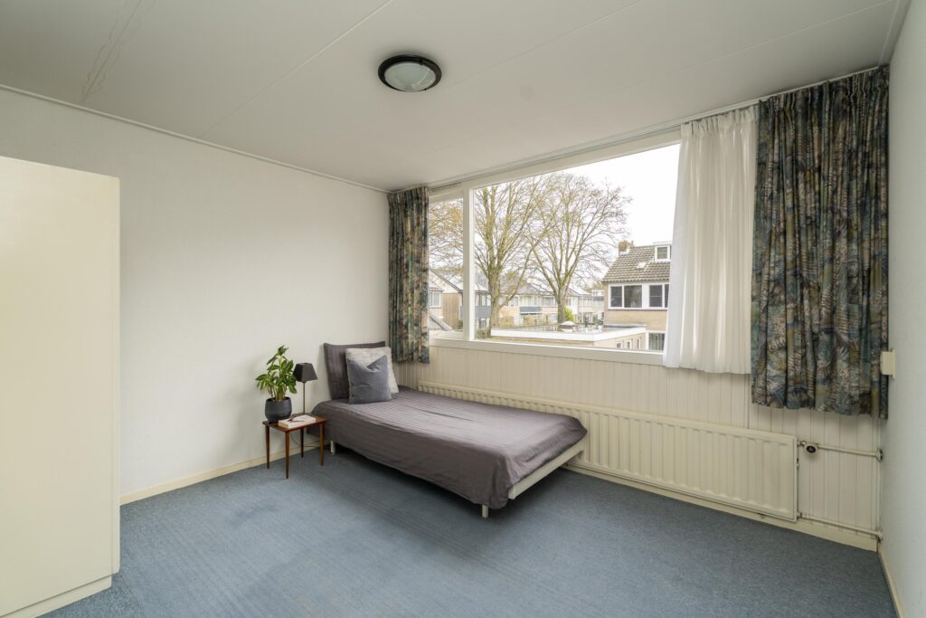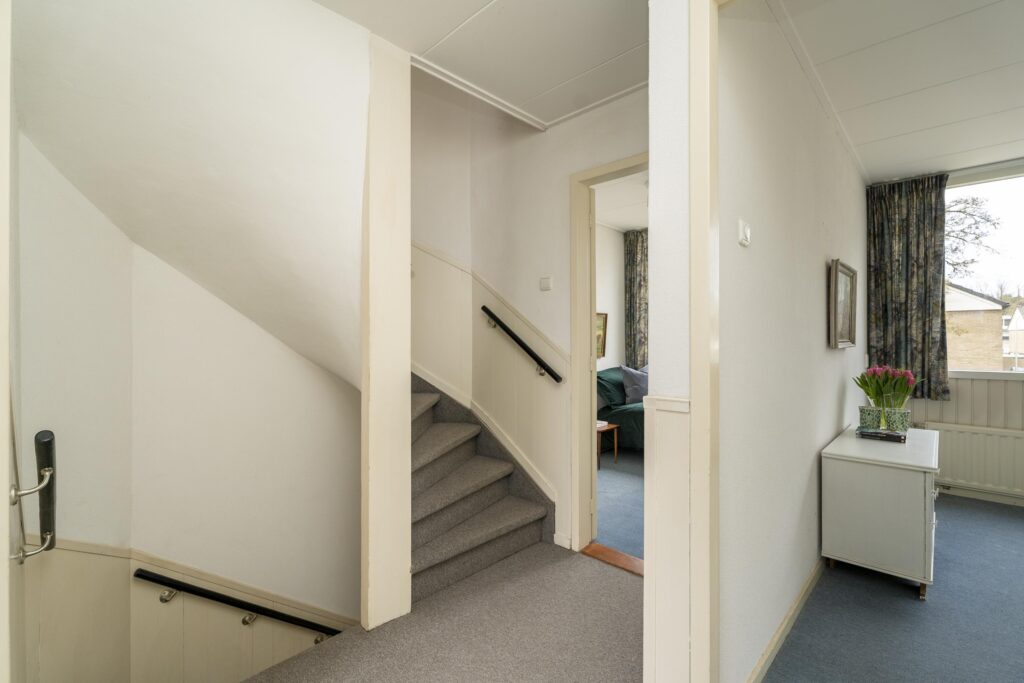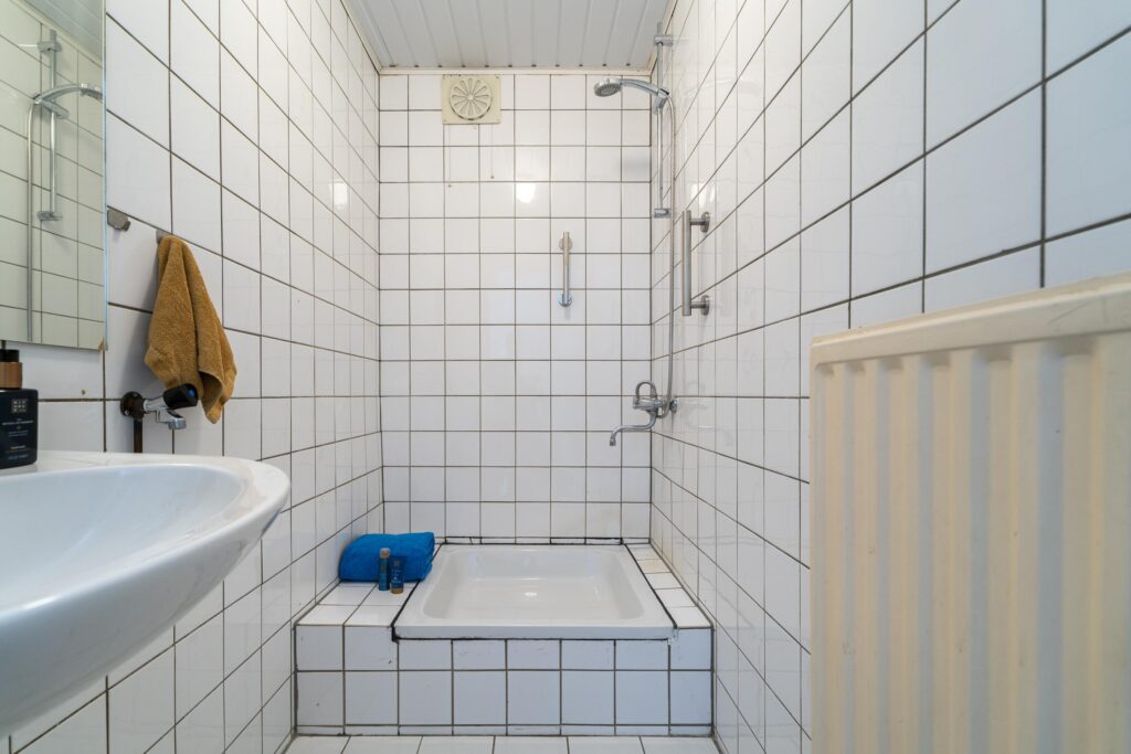 De overloop geeft toegang tot vier slaapkamers en de badkamer. Twee slaapkamers zijn gelegen aan de achterzijde van de woning en twee aan de voorzijde. Alle slaapkamers zijn afgewerkt met vloerbedekking. De badkamer is gelegen in het midden van de verdieping en is volledig betegeld. De badkamer is voorzien van een douche, wastafel en de aansluitingen voor de wasmachine.