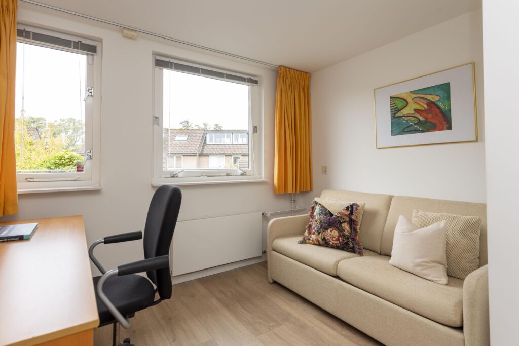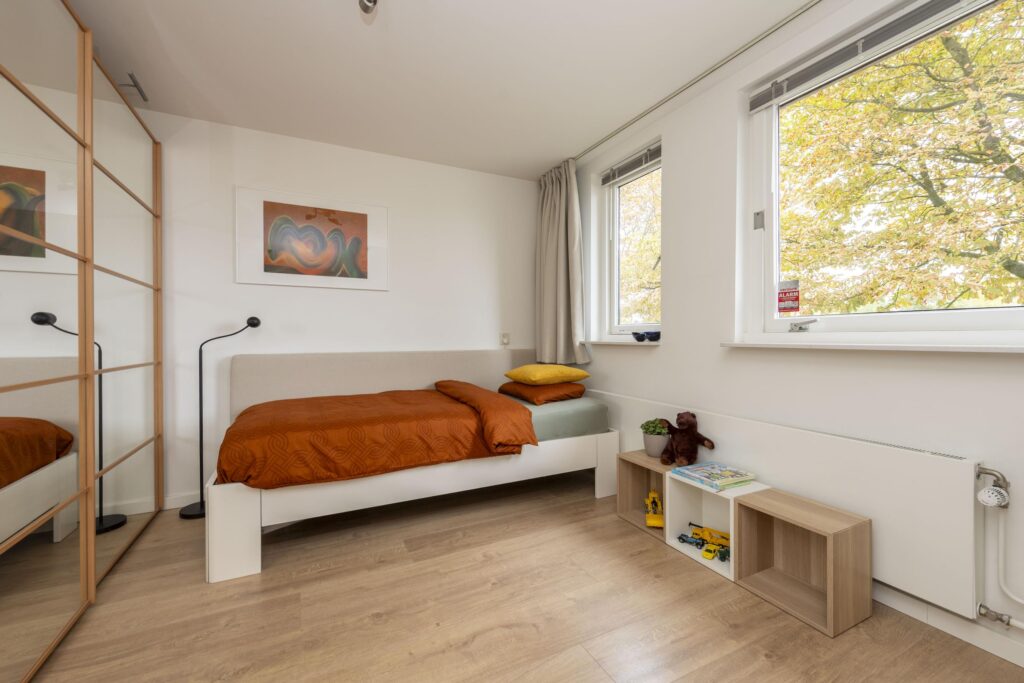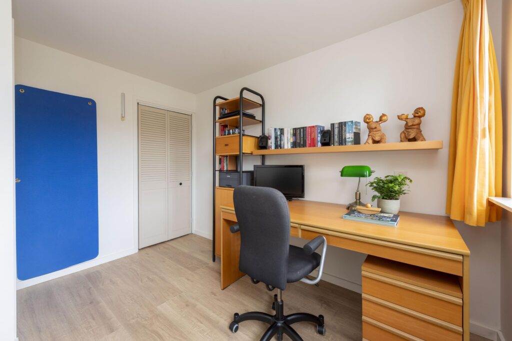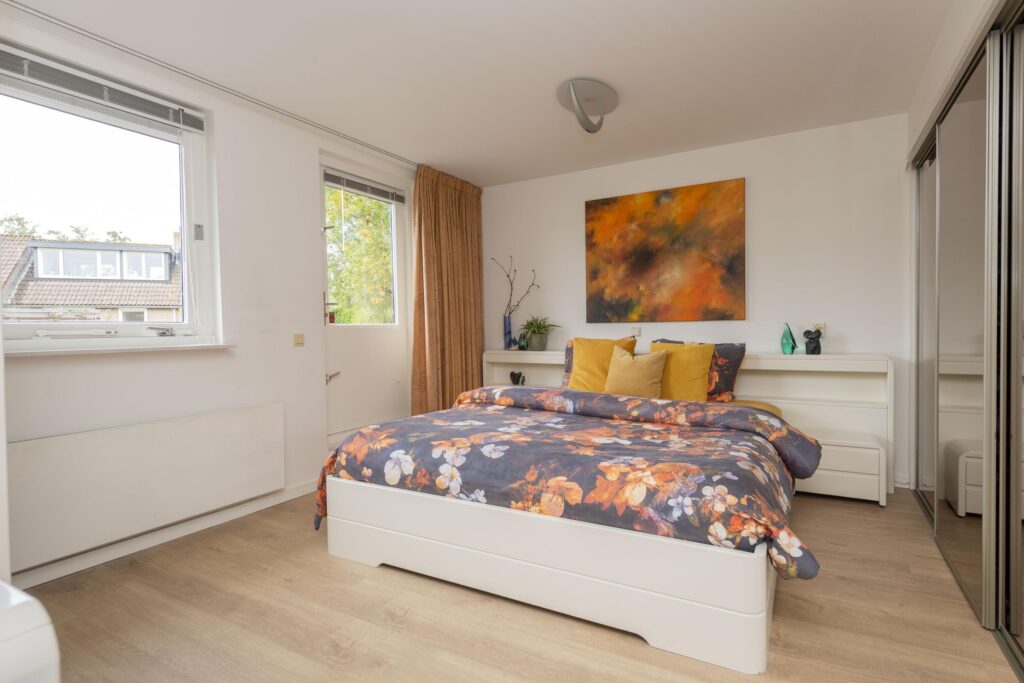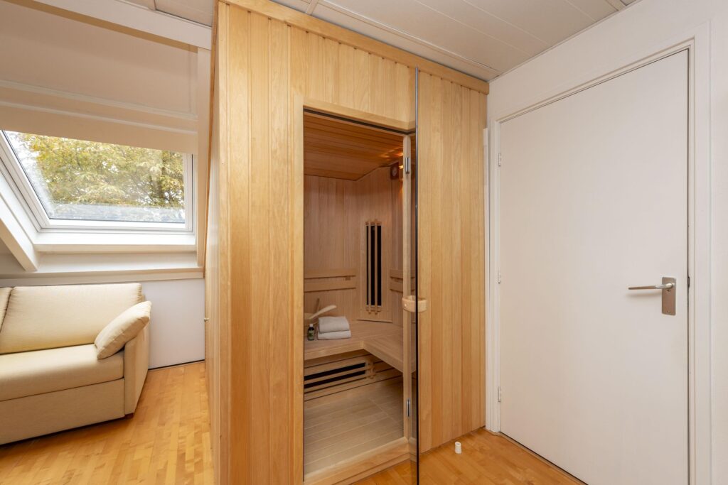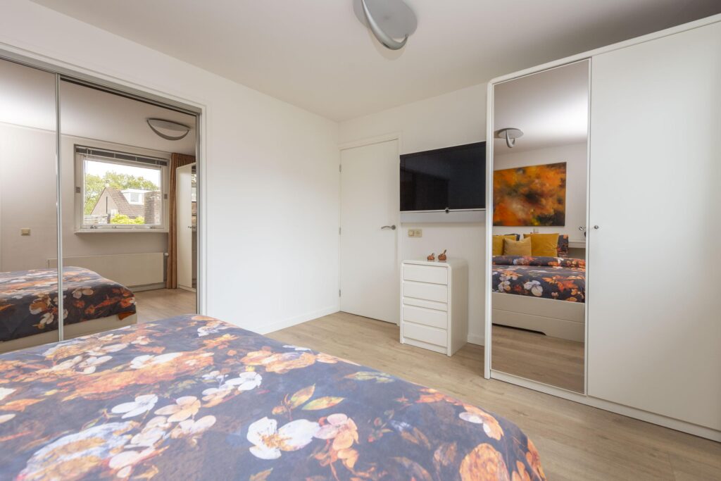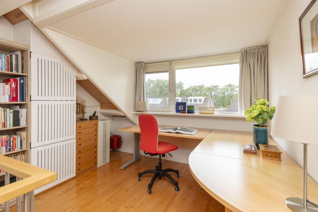 Op de bovenste verdieping van deze woning wachten een verrassend ruime voorzolder en slaapkamer. De praktische indeling en het karakter van de schuine kap met dakkapellen zorgen voor een ruimtelijke sfeer. Op het voorste gedeelte vindt u een prettige werkplek. De slaapkamer is ruim bemeten en de aanwezige knieschotten bieden extra bergruimte zonder concessies te doen aan het gebruiksoppervlak. In de kamer is daarnaast een 2-persoons sauna (infrarood & stenen) aanwezig. De volledige verdieping is mooi afgewerkt met een parketvloer en tevens vindt u hier de opstelling van de CV-ketel (2019) met ombouw. In de nok zijn daarnaast twee vlieringen aanwezig voor nog meer opbergruimte. De verdieping biedt vele mogelijkheden, en past zich waar nodig moeiteloos aan aan veranderende woonwensen.
