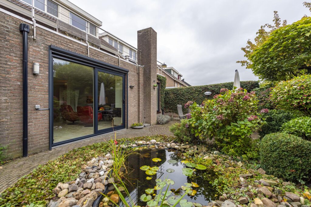 Fraai aangelegde voor- en achtertuin. Zodra u arriveert aan de Weteringlaan, valt direct de verzorgde voortuin op, met groene beplanting en volwassen bomen die zorgen voor een rustige, natuurlijke uitstraling. De ruime oprit biedt plaats voor meerdere auto’s en geeft toegang tot de garage en de achterom. Aan de achterzijde van de woning wacht een prachtig aangelegde tuin gelegen op het zuidwesten, waar privacy, groen en zon samenkomen. De tuin is ingericht met sierlijke borders, een vijver (voorgevormd, 2000 liter) met waterplanten, buitenkraan en fraaie hagen die een sfeervolle en beschutte plek creëren. Dankzij de ligging op het zuidwesten geniet u hier de hele dag van de zon. De ruime terrassen bieden volop gelegenheid om te ontspannen of te tafelen in de buitenlucht met uitzicht op het groen. Vanuit de tuin stapt u direct de woonkamer in, waardoor binnen en buiten op een natuurlijke manier in elkaar overlopen. De tuin is een heerlijke plek waar u elke dag kunt genieten van rust, ruimte en natuur, midden in de geliefde wijk De Blaak. De achtertuin is ook achterom bereikbaar vanaf de oprit. Daarnaast heeft u vanuit de tuin toegang tot de ruime garage. De garage (ca. 17 m²) is voorzien van grote schuifdeur kasten.